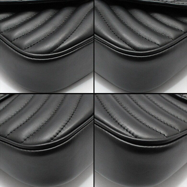 - 부드러운 블랙 퀼팅 카프 스킨 소재에 빈티지 골드 톤 장식이 더해진 아이템입니다.