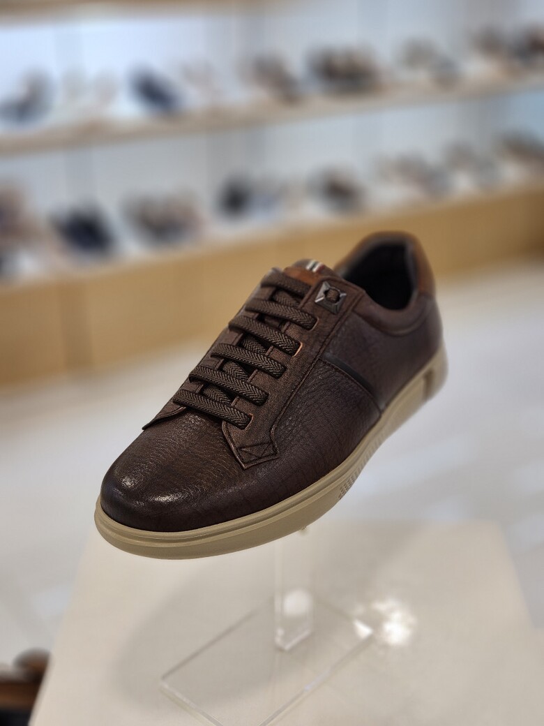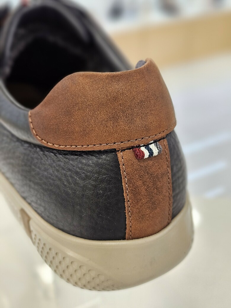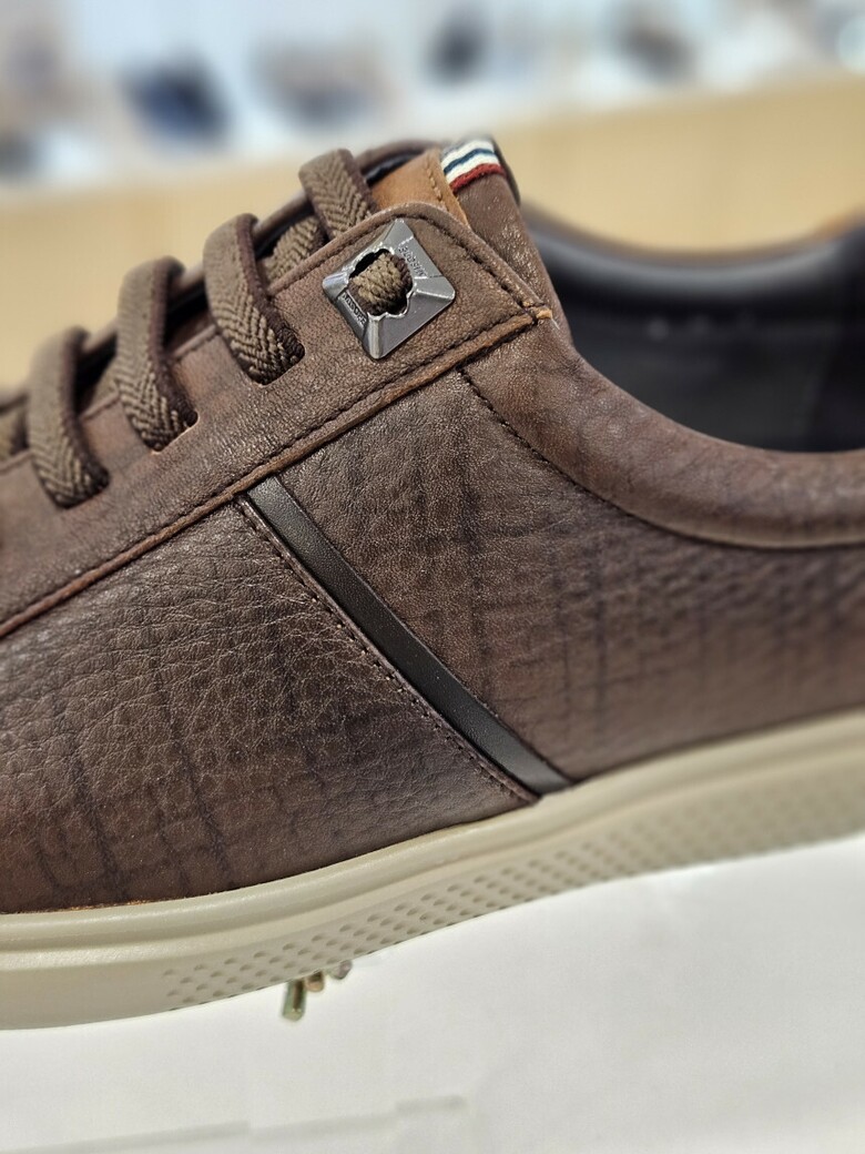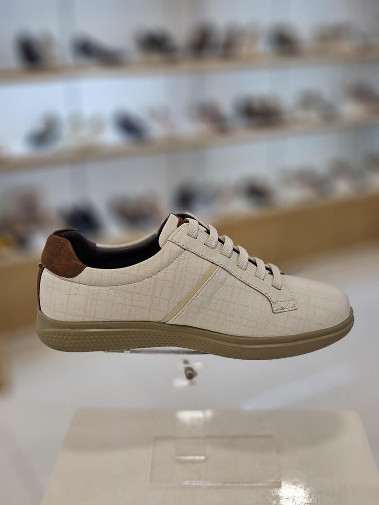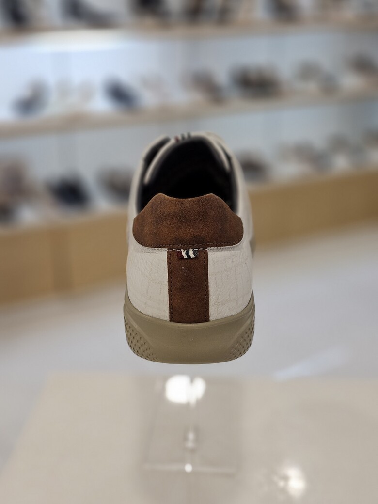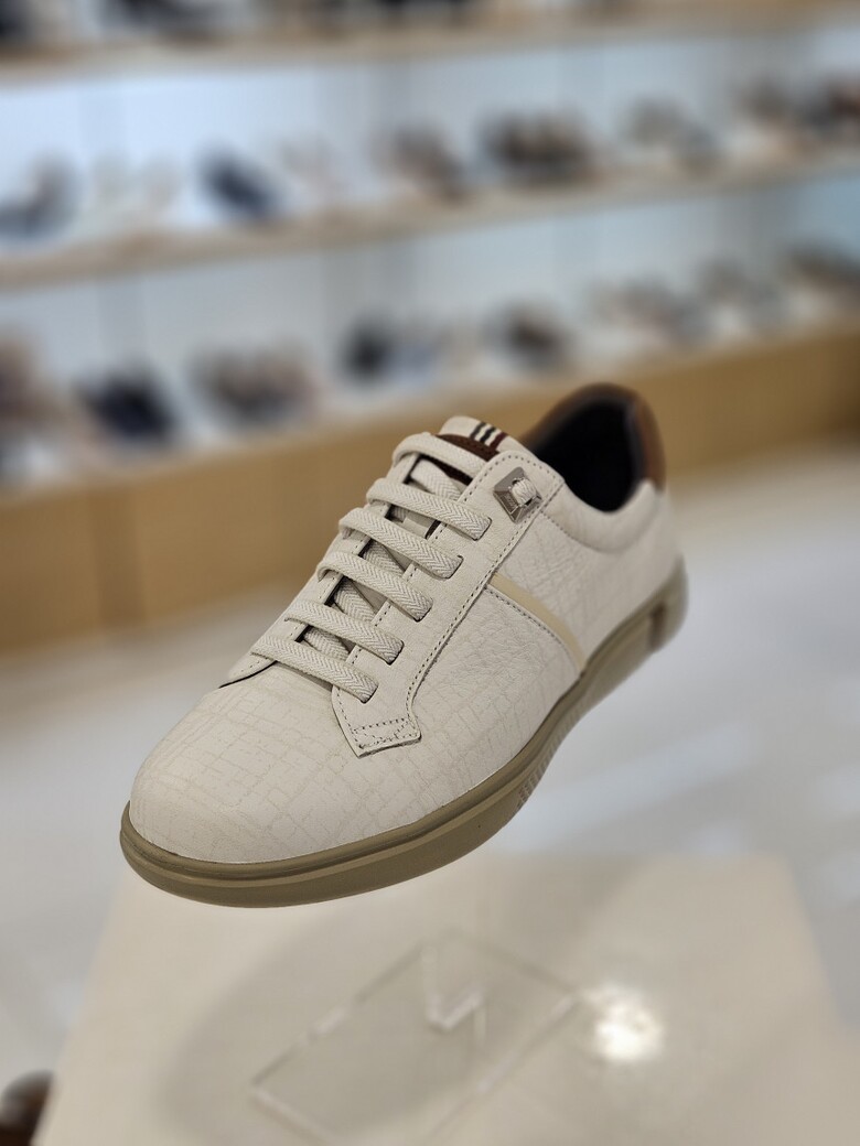 깔끔한 디자인에 무늬가죽으로 포인트를 준 스니커즈