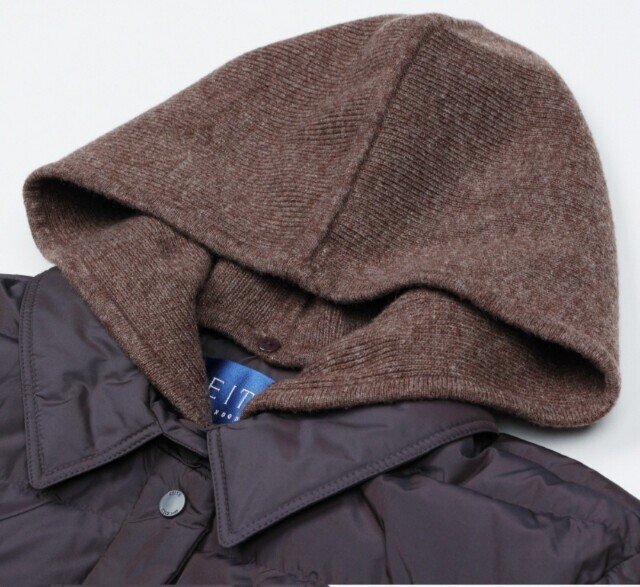 칼라넥에 탈부착이 가능한 후드 구수다운입니다.