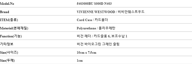 비비안웨스트우드 5403000BU S000D N403 비건 바이오그린 그레인 슬림 카드지갑