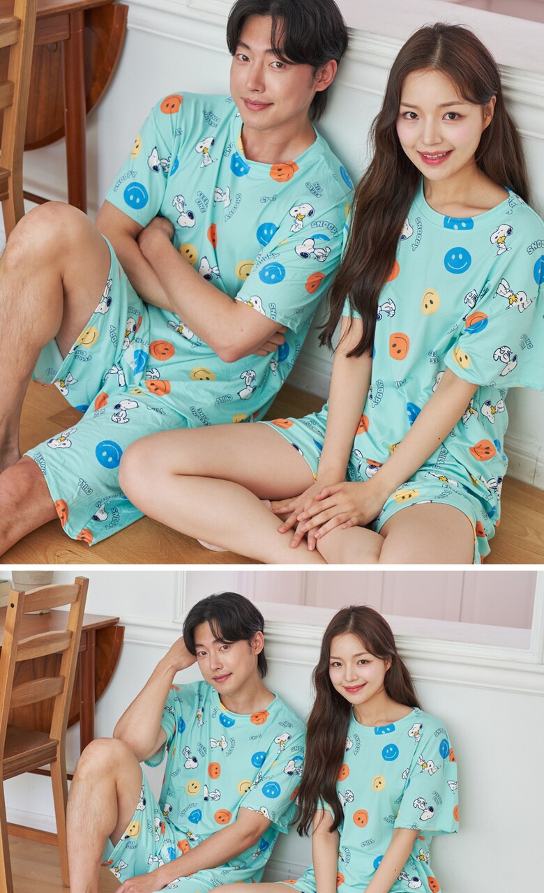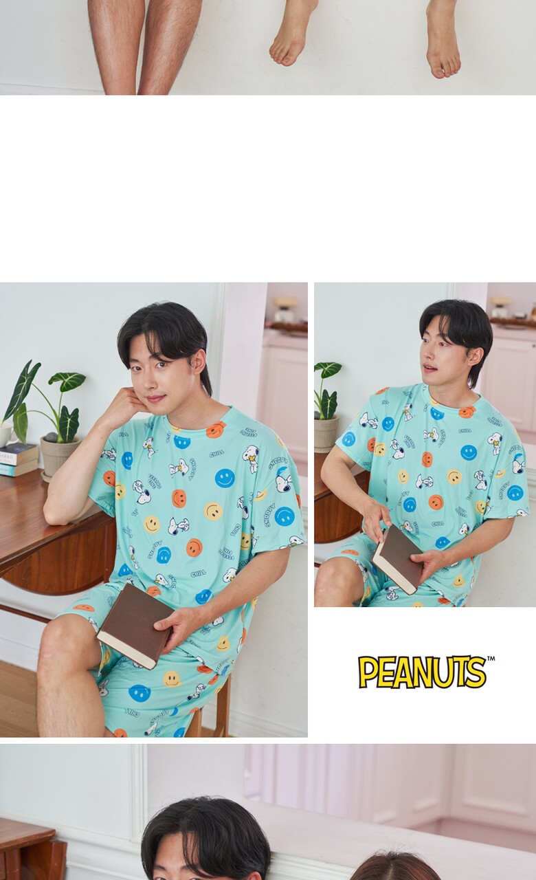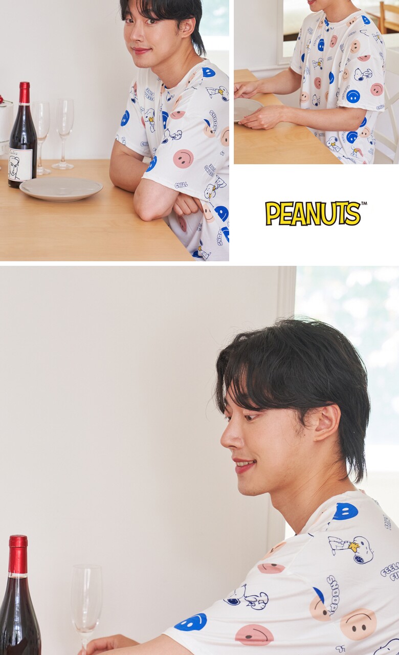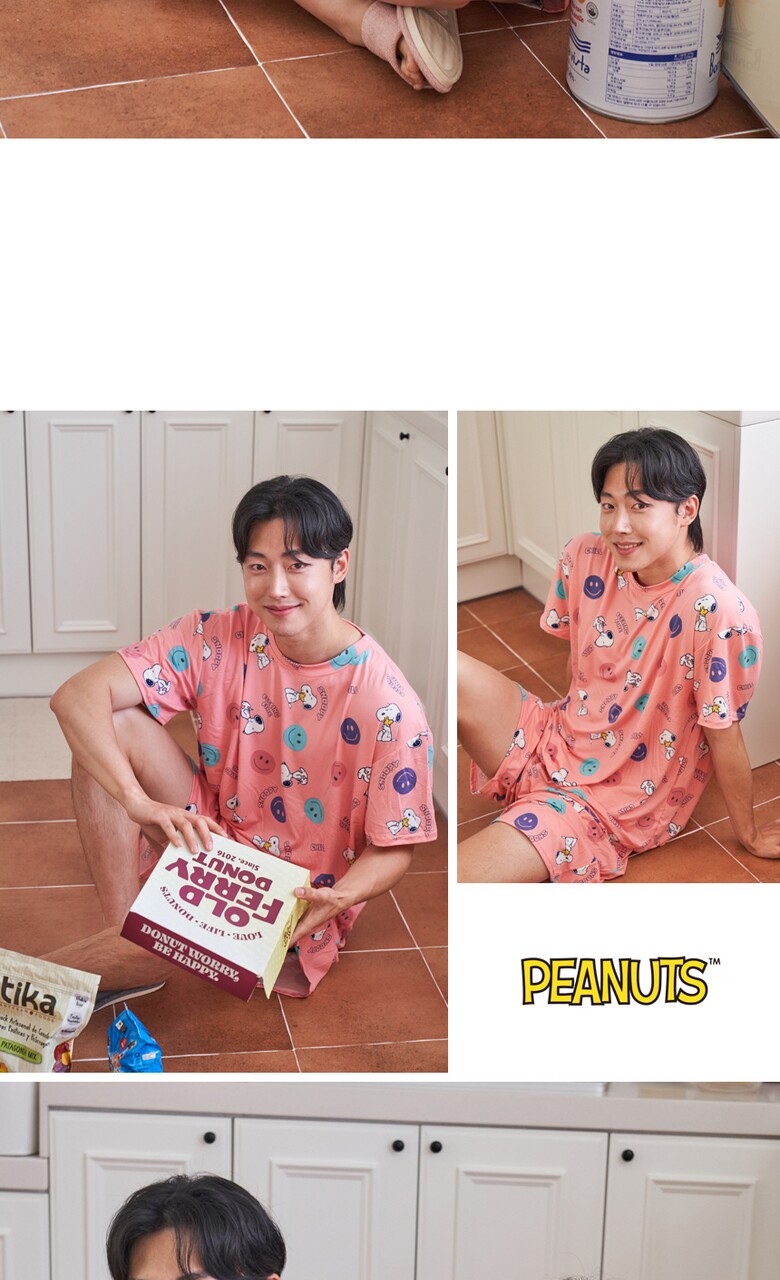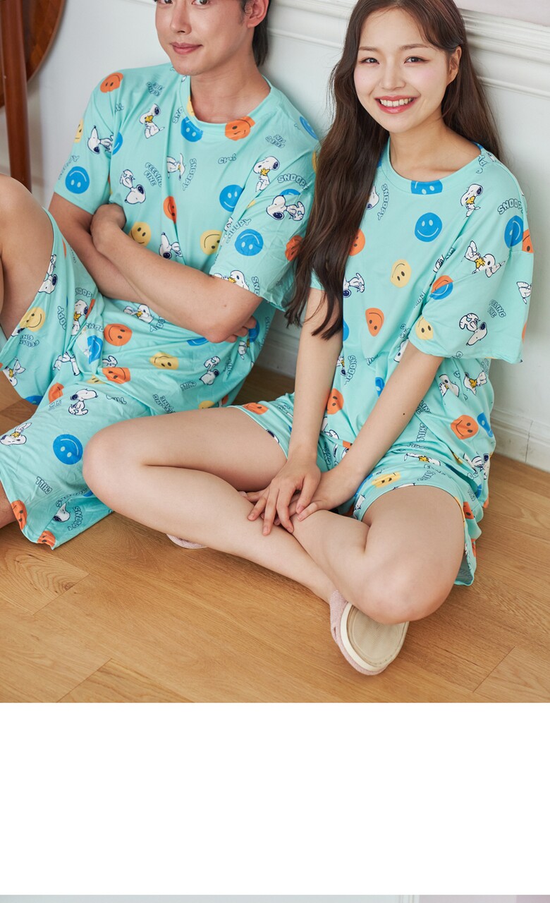 골피아 PAP4SET03 피너츠 정품 남녀공용 홈웨어 스누피 반팔 세트 커플 잠옷