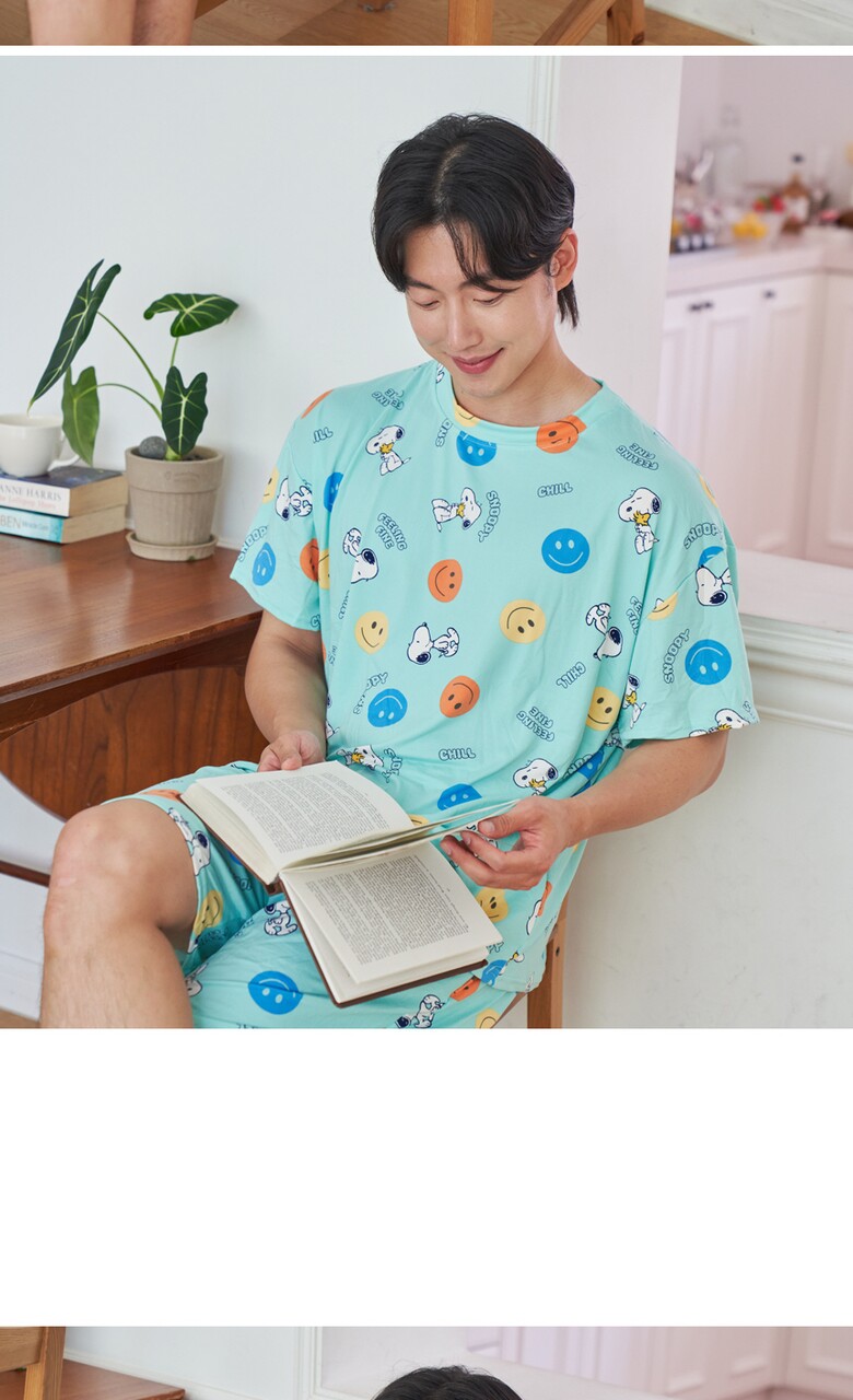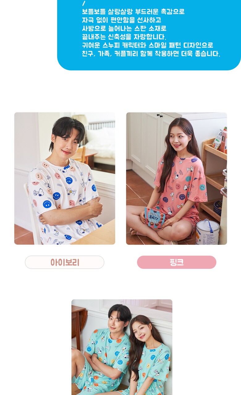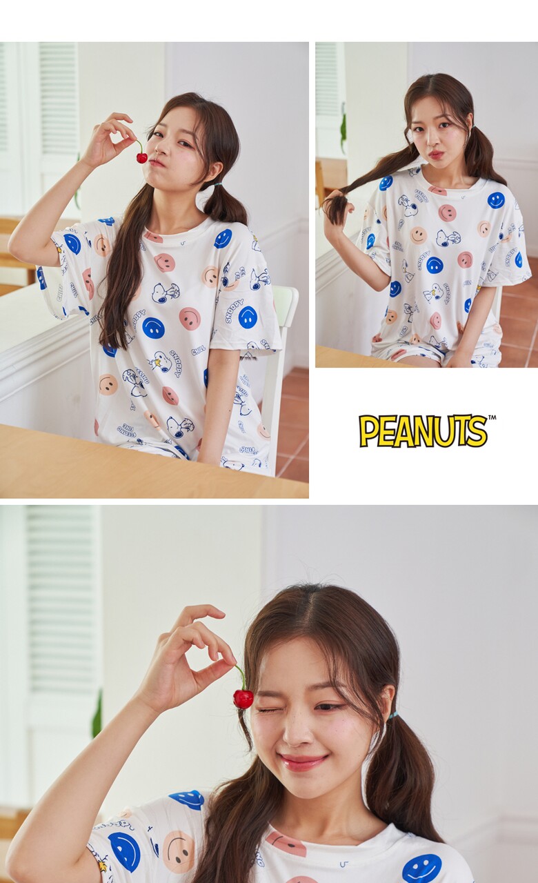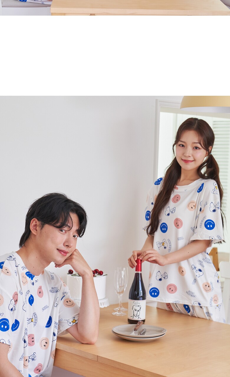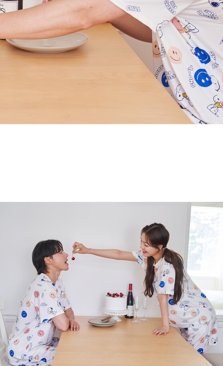 골피아 PAP4SET03 피너츠 정품 남녀공용 홈웨어 스누피 반팔 세트 커플 잠옷