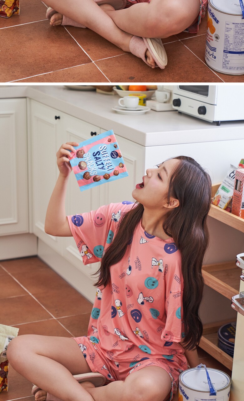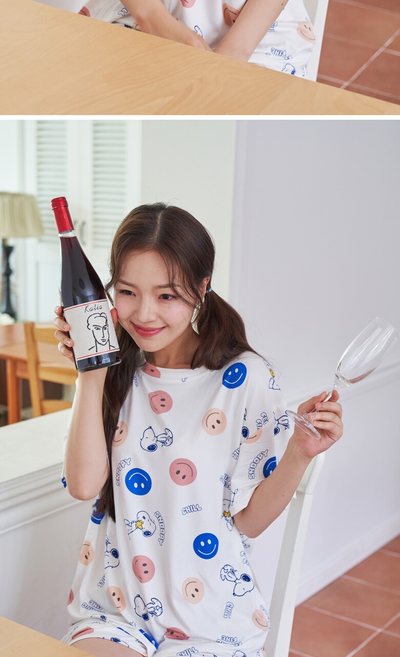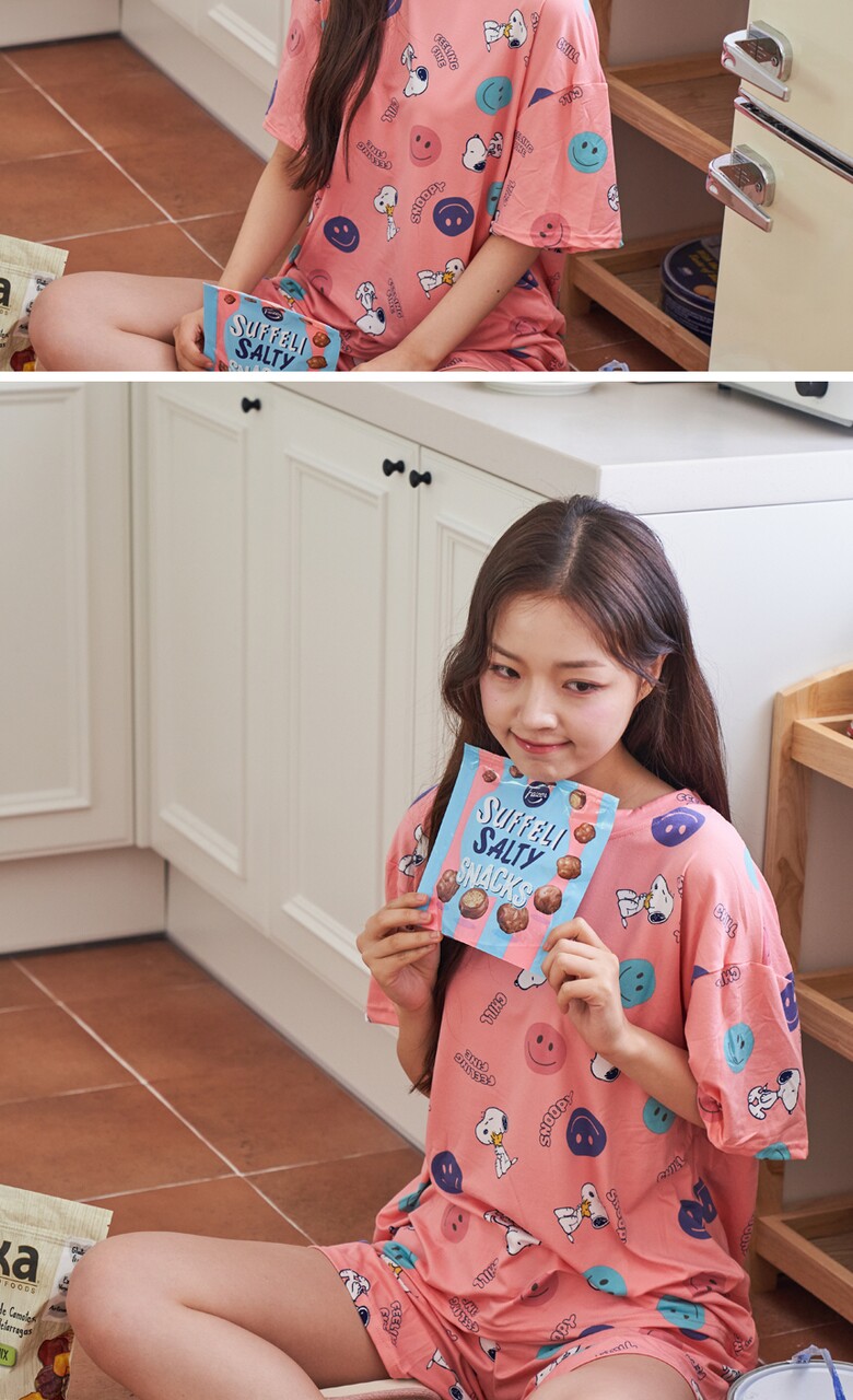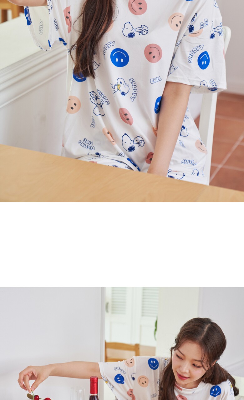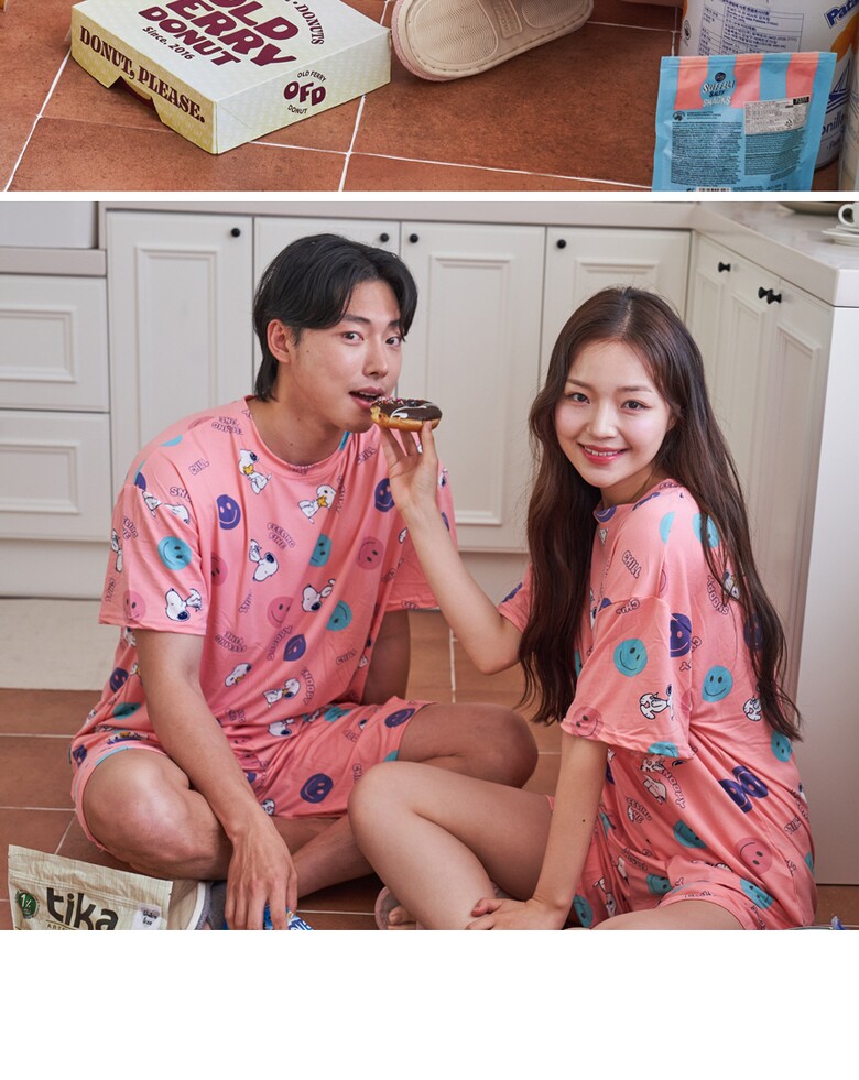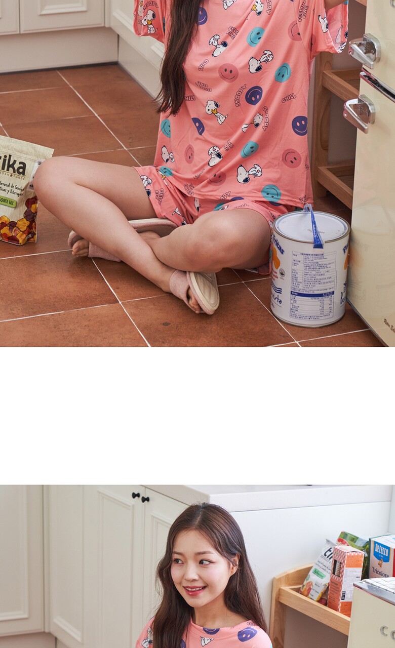 골피아 PAP4SET03 피너츠 정품 남녀공용 홈웨어 스누피 반팔 세트 커플 잠옷