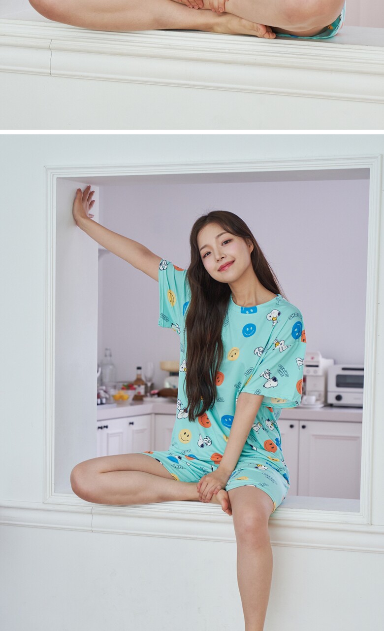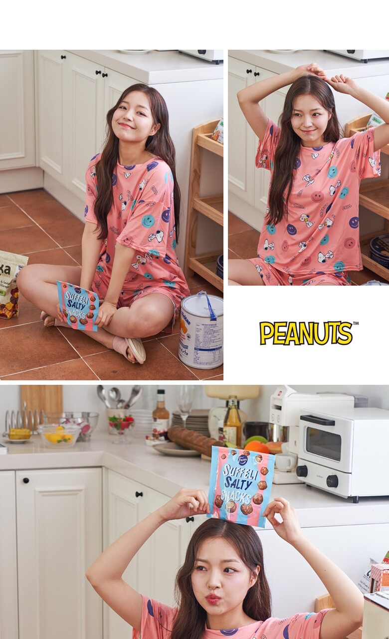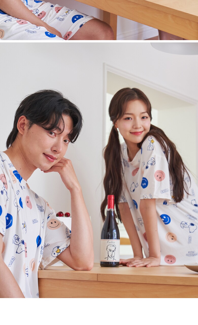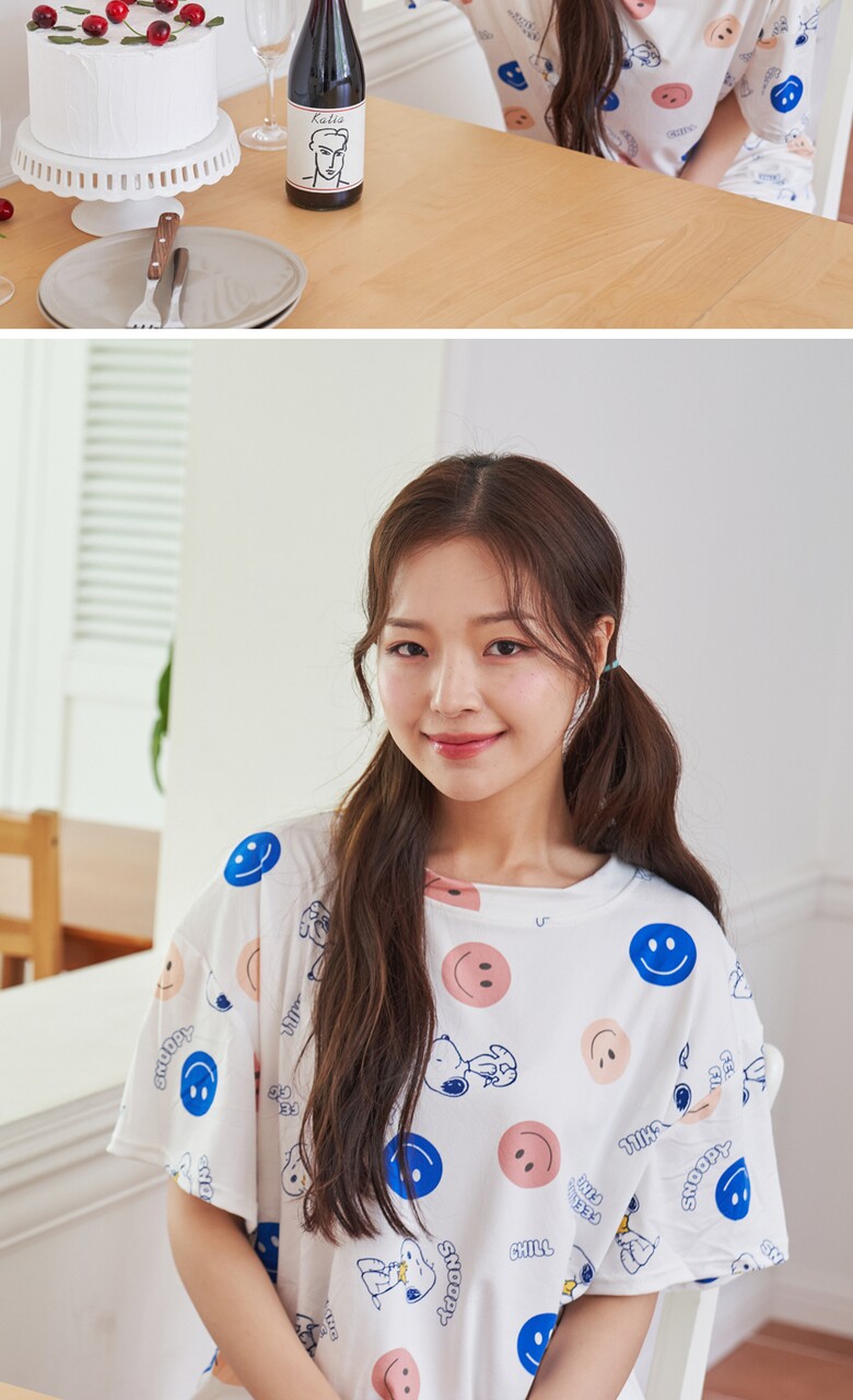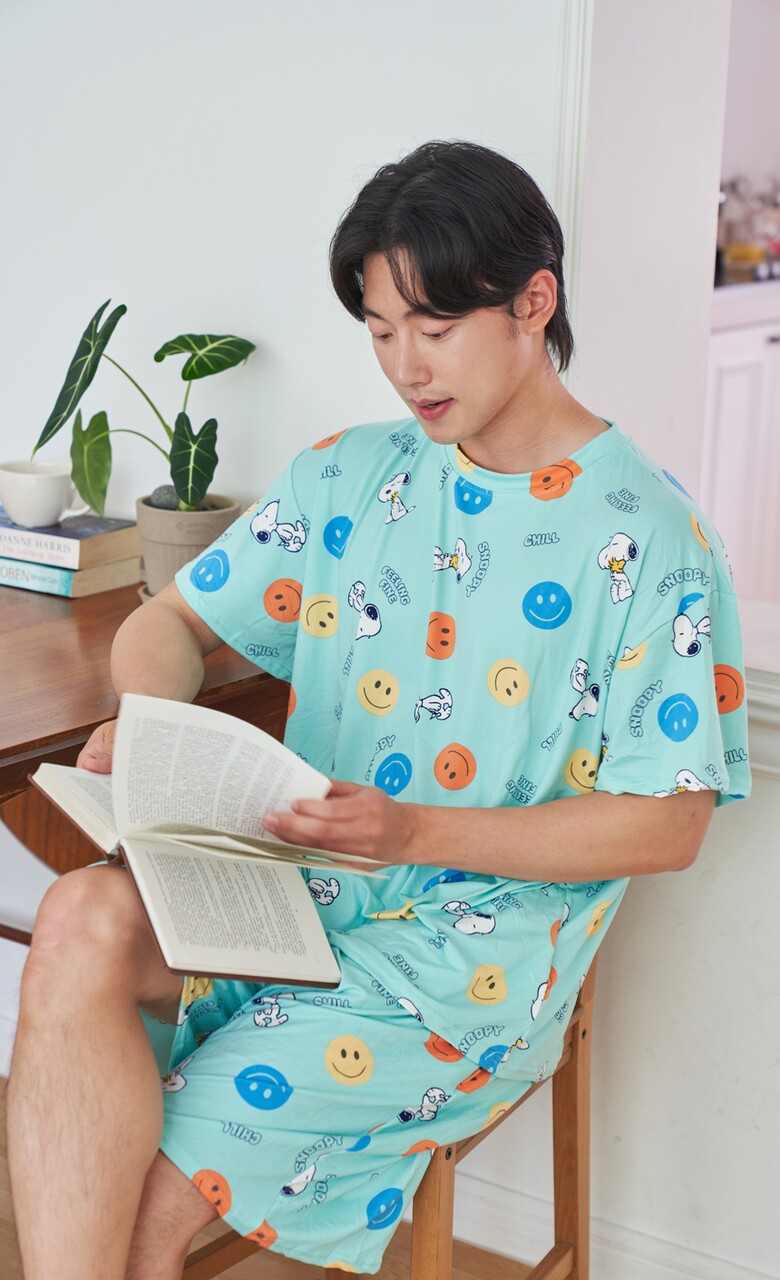 골피아 PAP4SET03 피너츠 정품 남녀공용 홈웨어 스누피 반팔 세트 커플 잠옷