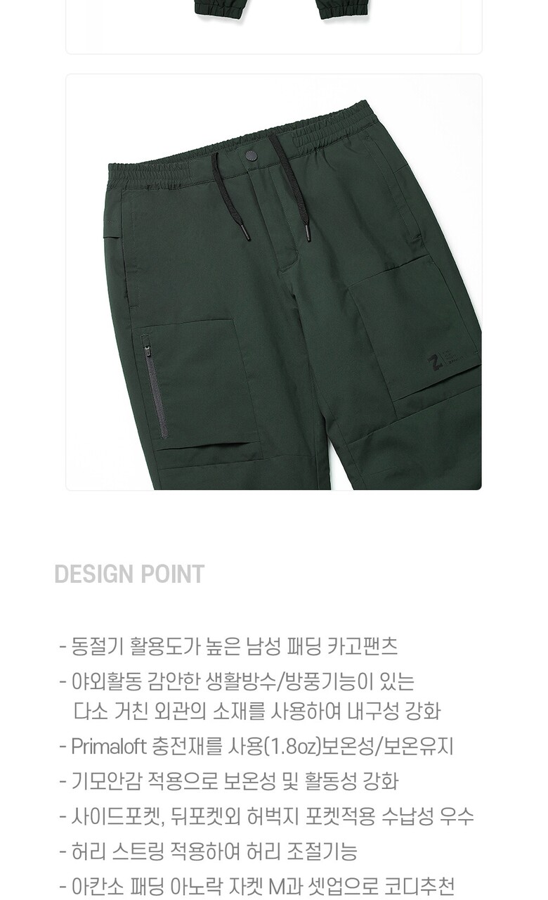 잔카 센느 패딩 카고팬츠 M ZFCDWPT005