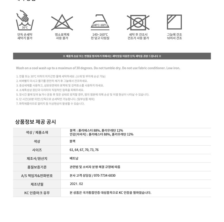 6. 세탁방법 및 취급시 주의사항 | 상품 이미지 참조 |