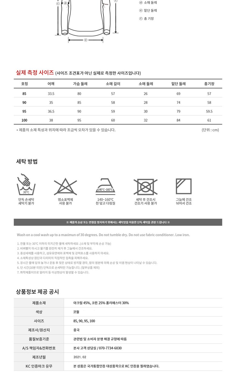 6. 세탁방법 및 취급시 주의사항 | 상품 이미지 참조 |