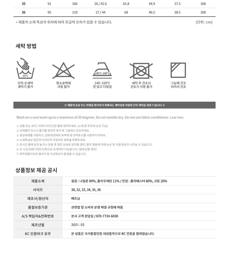 6. 세탁방법 및 취급시 주의사항 | 상품 이미지 참조 |