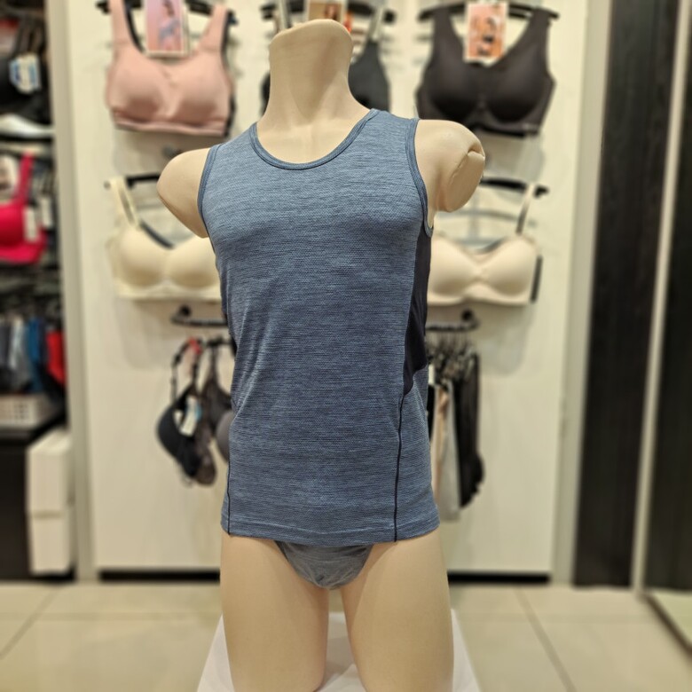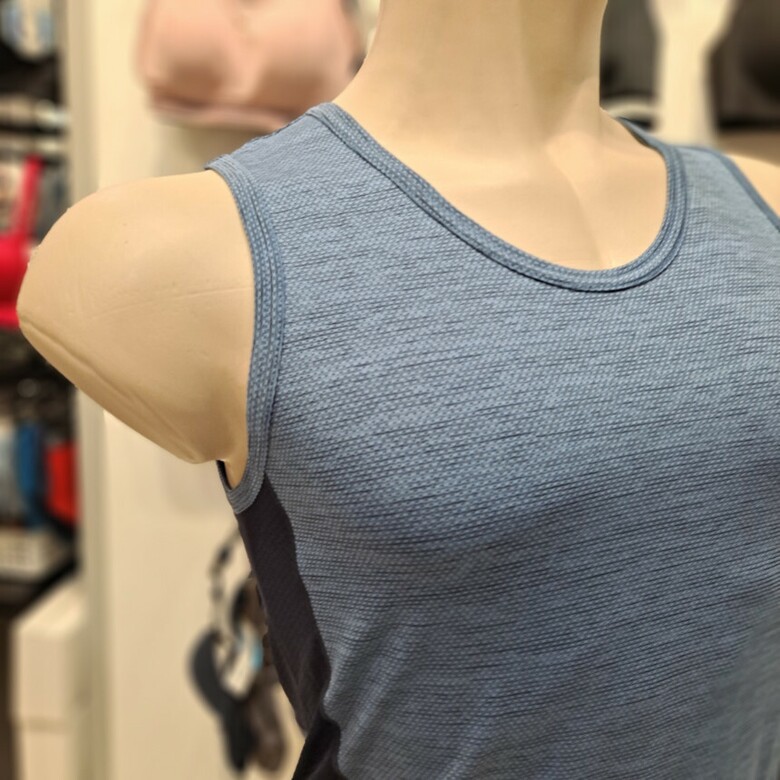 은은한 라인이 멋스러운 메쉬원단에 조직감있는 메쉬원단을 매치하여 스포티한 느낌으로 연출한 남성 런닝 제품.