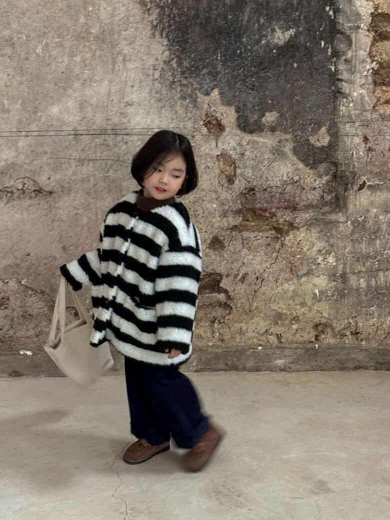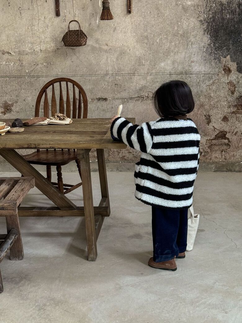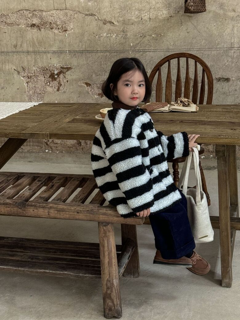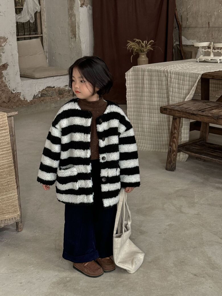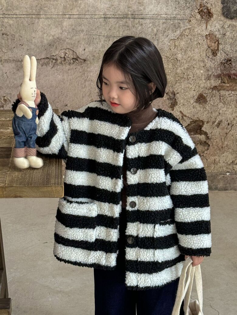 [예약발송] 뽀글이 스트라이프 코트 R12751