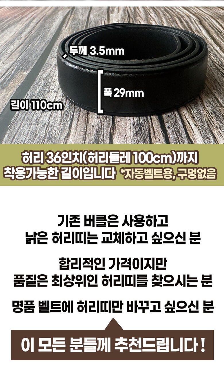 2. 소재 | 국산 플럼도트 교체용 소가죽 벨트끈 허리띠 자동벨트 110cm |