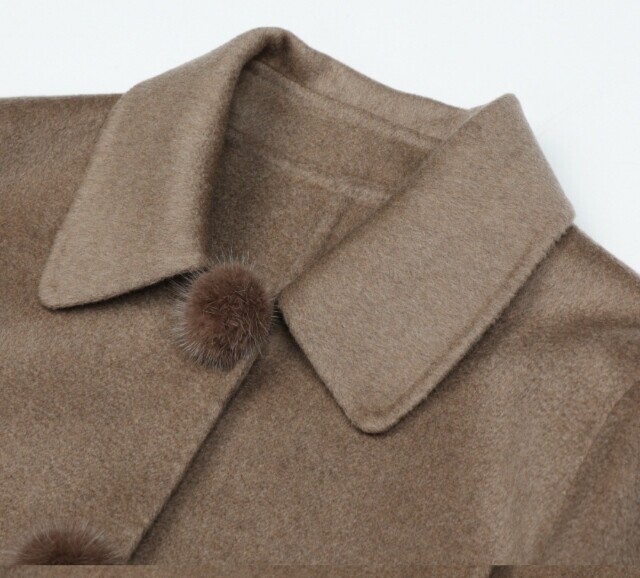 밍크코사지 단추가 여성스럽고 귀여운 분위기로