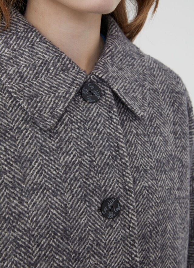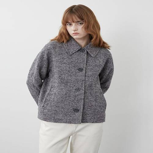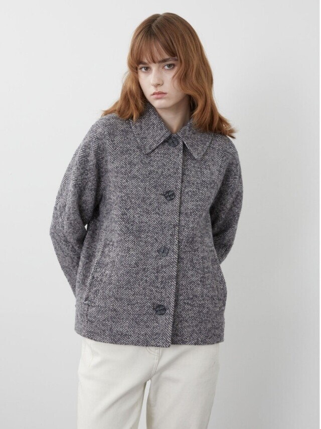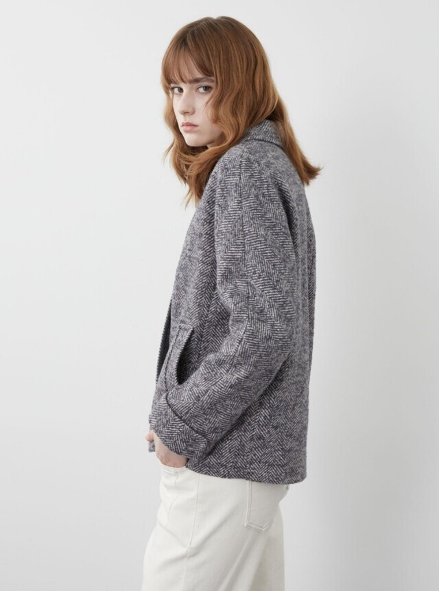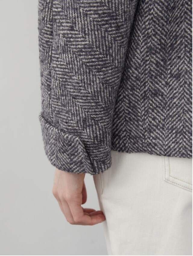 잔잔한 헤닝본 소재의 스탠카라 자켓입니다