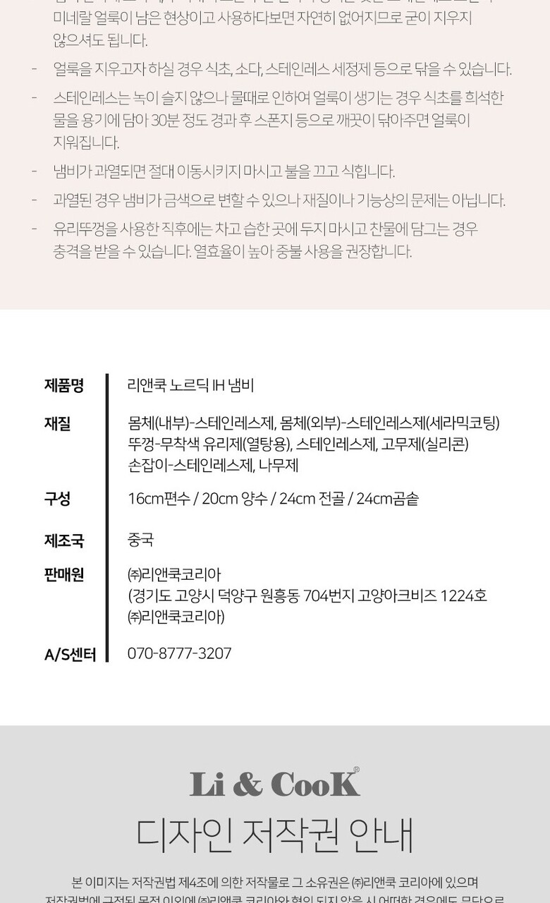 리앤쿡 노르딕플러스 IH 냄비 20양수