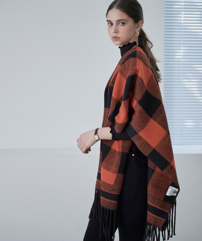 르니앤맥코이 심플 포인트 와이드 실루엣 체크 니트 숄ML12KJ709