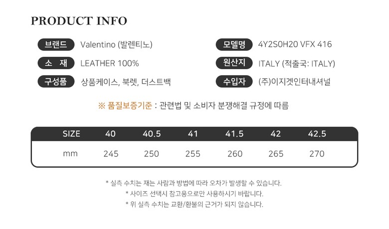 | 1. 제품 소재 (운동화인 경우에는 겉감, 안감을 구분하여 표시) | 상세페이지 참조 |