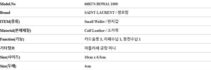 생로랑 668274 BOWA1 1000 카산드라 모노그램 마틀라세 금장 미니 반지갑