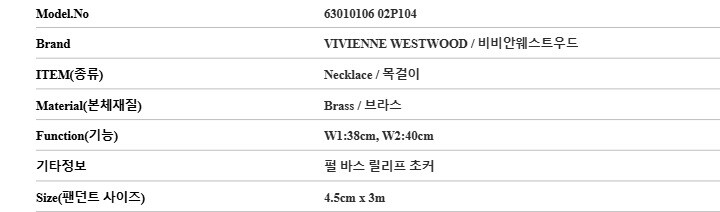 비비안웨스트우드 63010106 02P104 원 로우 펄 바스 릴리프 초커 목걸이