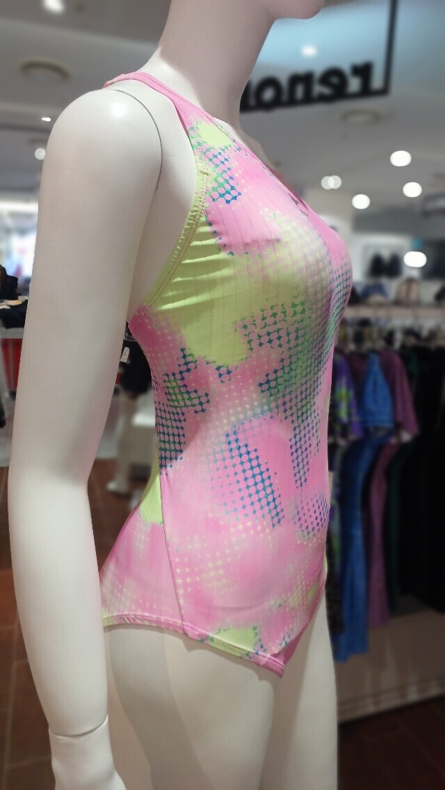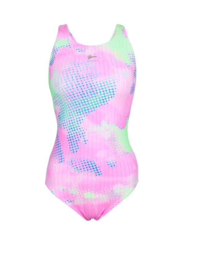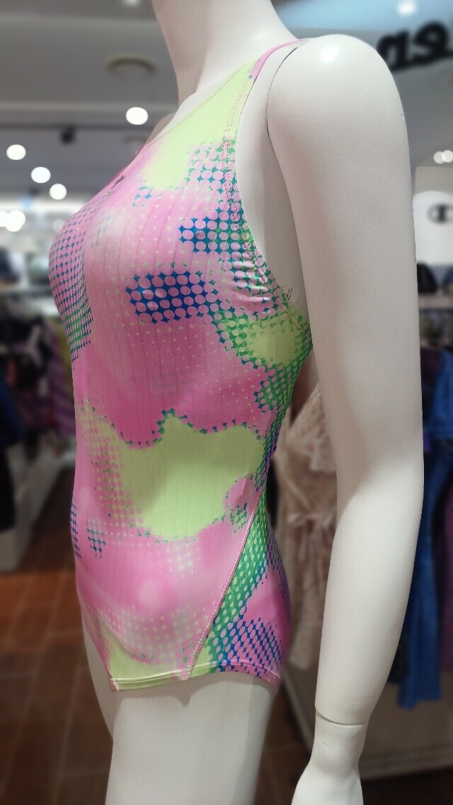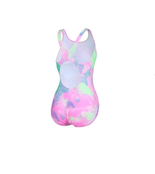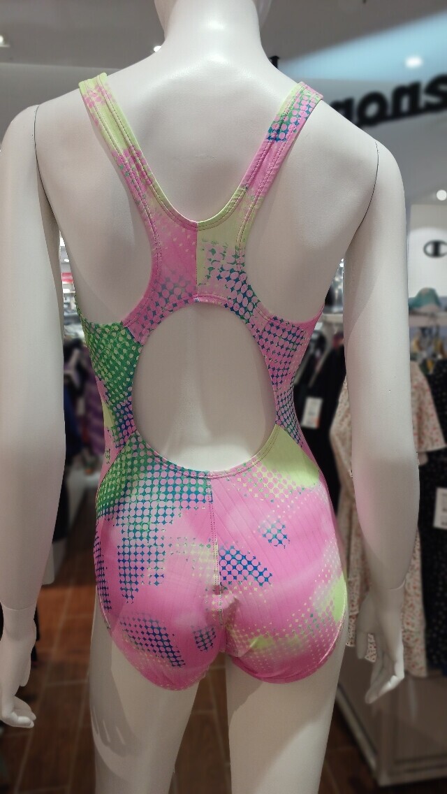 화사한 핑크 컬러가 포인트인 여성 X백 수영복입니다.