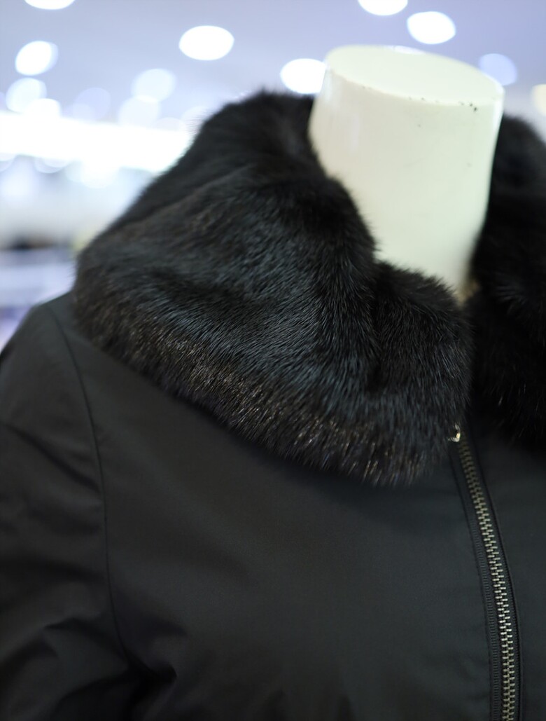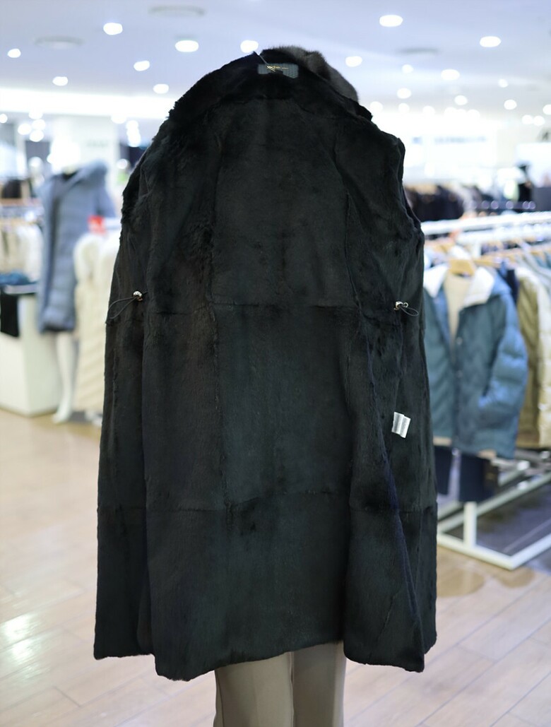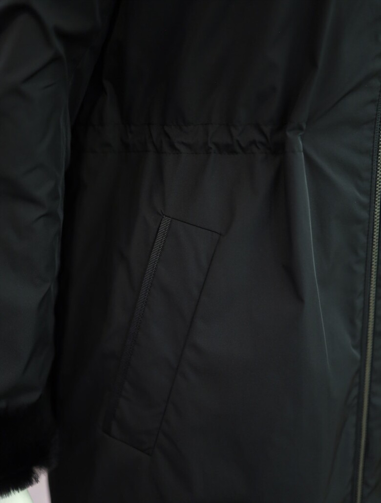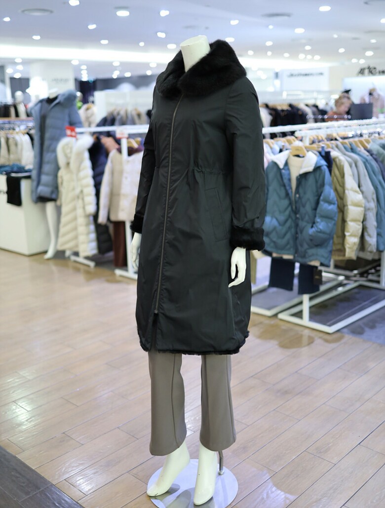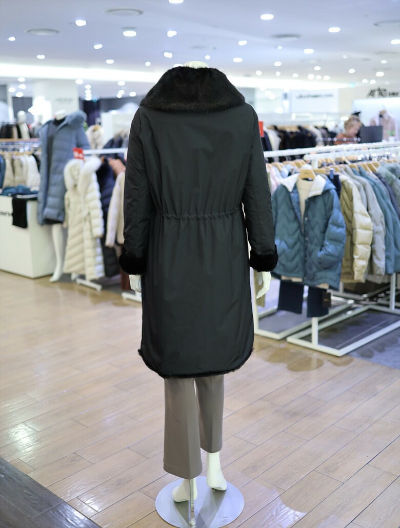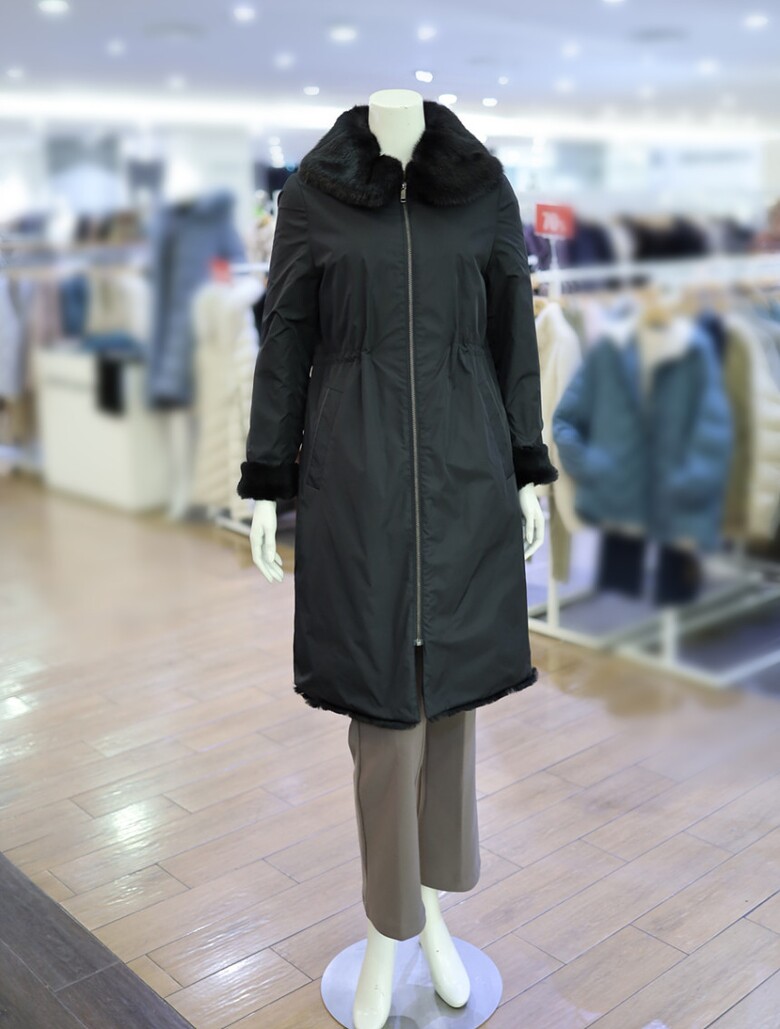 여성 허리 스트링 밍크 배색 집업 롱 점퍼 DQDCRH830