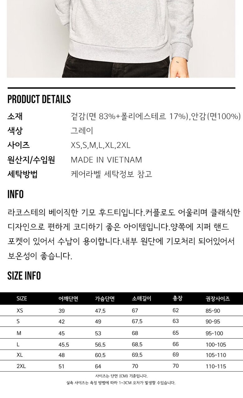 LACOSTE 플리츠 기모 후드 티셔츠 SH2128 - 그레이
