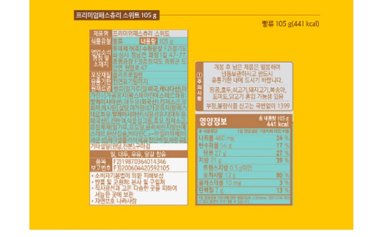 [롯데] 기린이네 빵 프리미엄 패스츄리 스위트 105g x 10봉