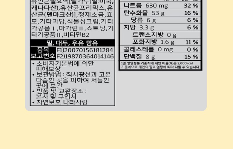 4. 생산일자,유통기한 | 1.냉장:상시제조/소비기한은 제조 일자로부터 7일 입니다.2.실온/냉동 제조연월일 :상시 제조 상품으로 잔여 소비기한이 3분의 1이상인 제품으로 출고되고 있으며, 소비 기한이 비교적 짧은 제품은 최소 13달이상 남은 제품으로 출고됩니다. |