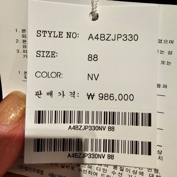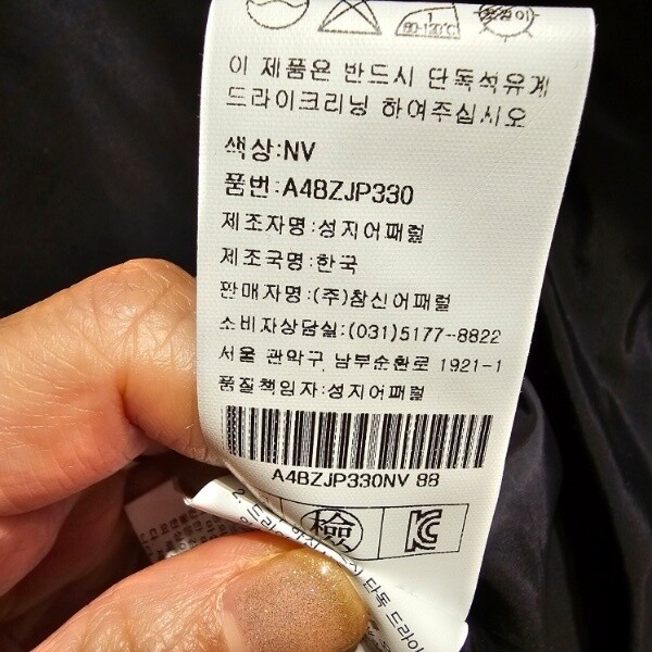 제조자 : (주)참신어패럴