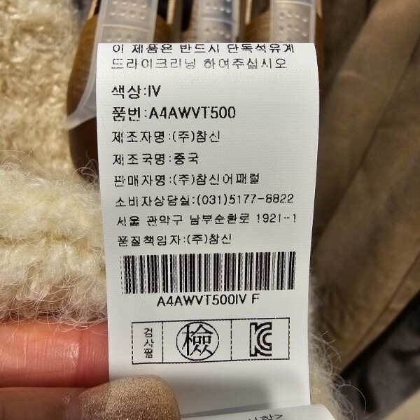 제조자 : (주)참신어패럴