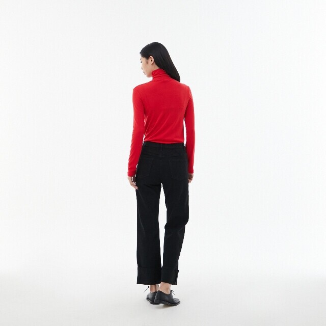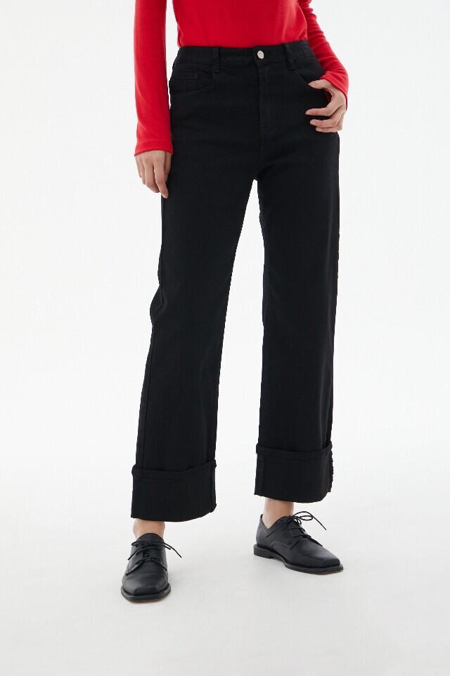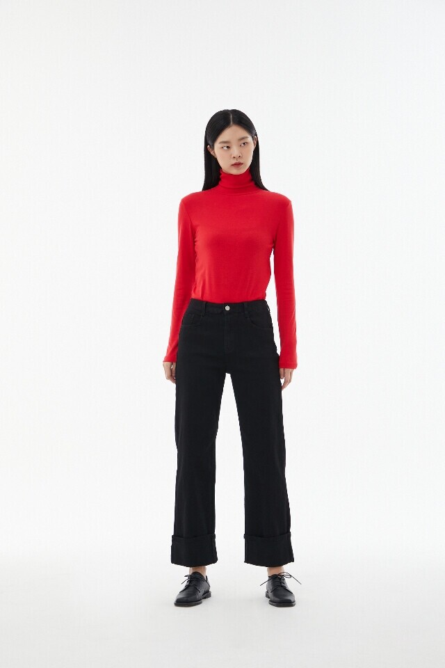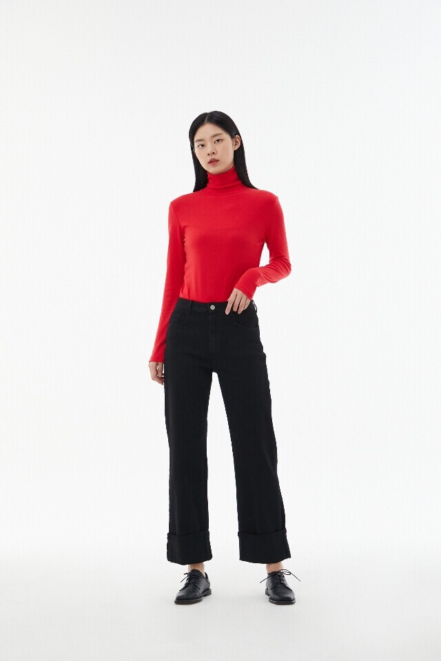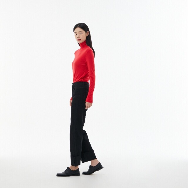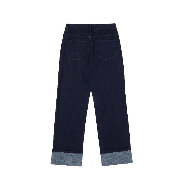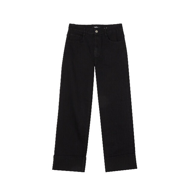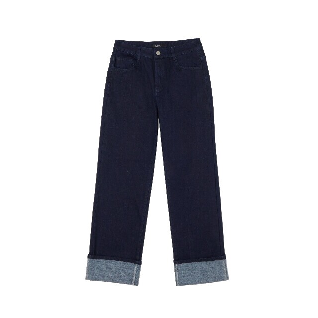 기모 다크 일자 밑단 롤업 데님 팬츠 ~