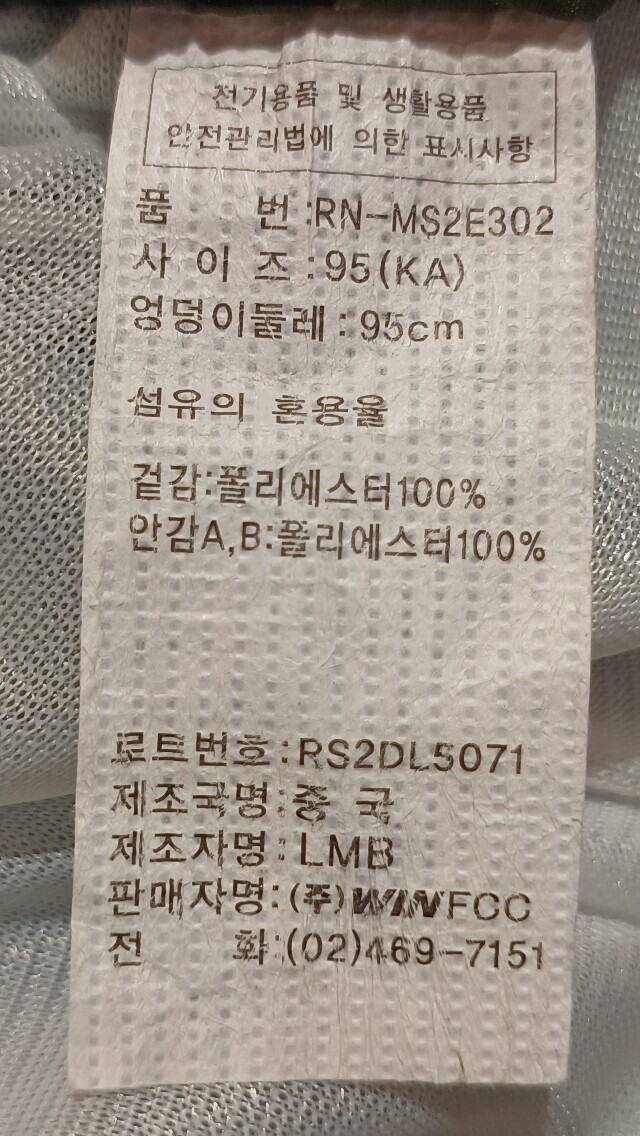 | 6. 세탁방법 및 취급시 주의사항 | 상품상세참조 |