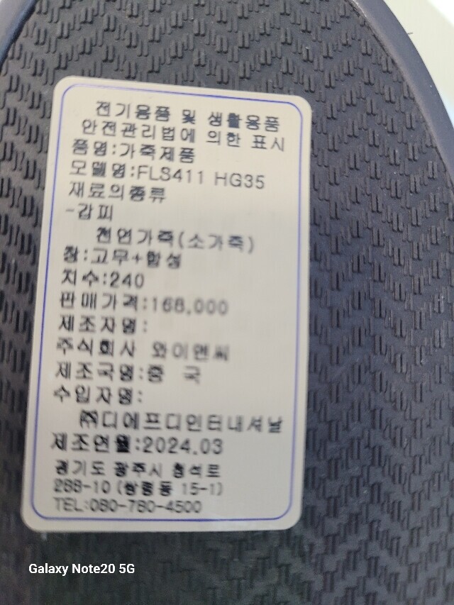 | 1. 제품 소재 (운동화인 경우에는 겉감, 안감을 구분하여 표시) | 상품상세참조 |