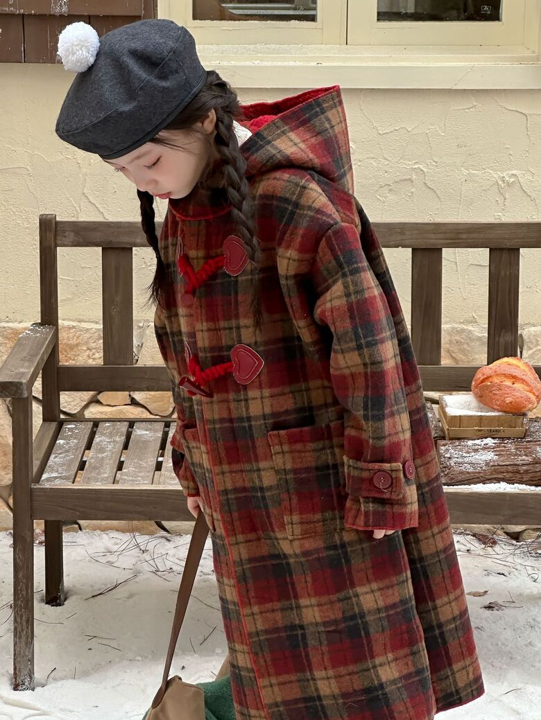 [예약발송] 하트 로프 체크 롱코트 R13139