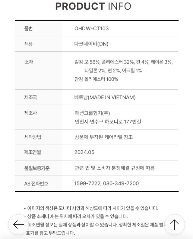 6. 세탁방법 및 취급시 주의사항 | 상품상세참조 |