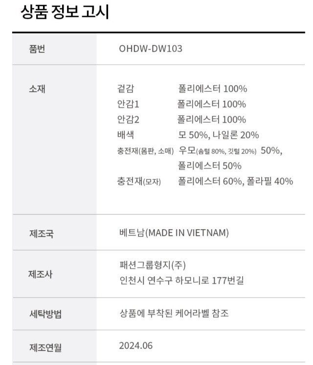 6. 세탁방법 및 취급시 주의사항 | 상품상세참조 |