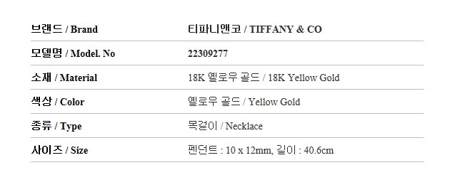 | 3. 제조사 | TIFFANY & CO |