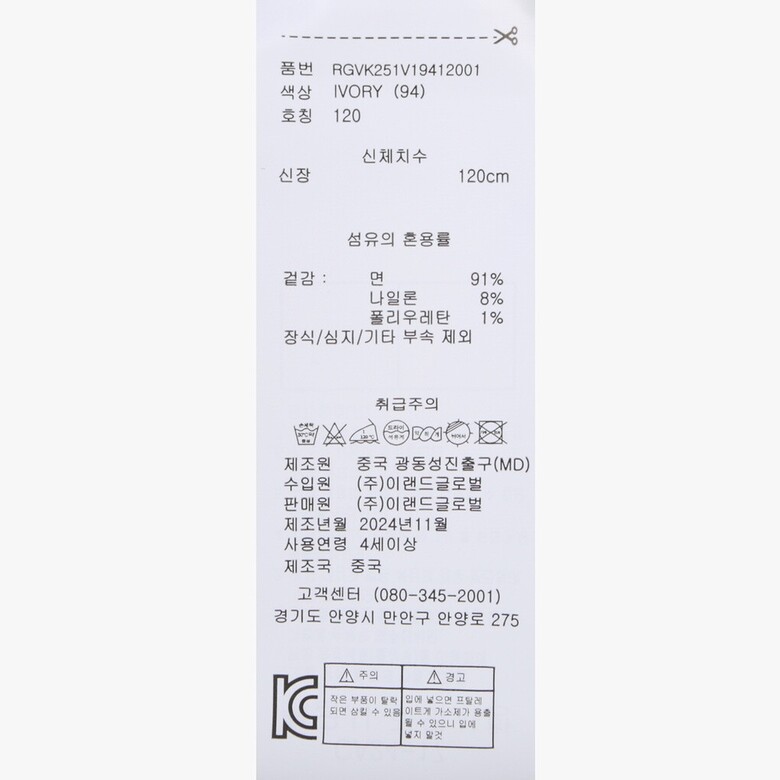 | 1. 제품 소재 (섬유의 조성 또는 혼용률을 백분율로 표시, 기능성인 경우 성적서 또는 허가서) | 상품상세참조 |