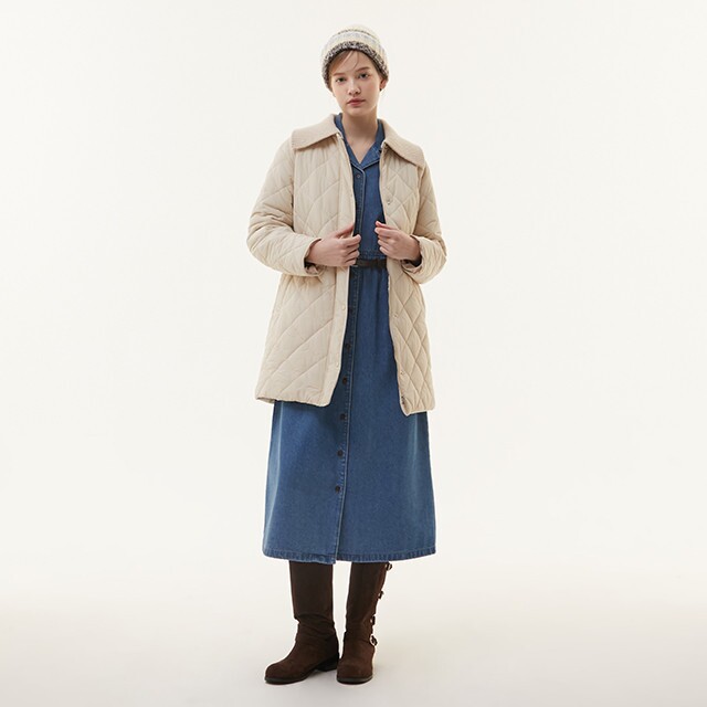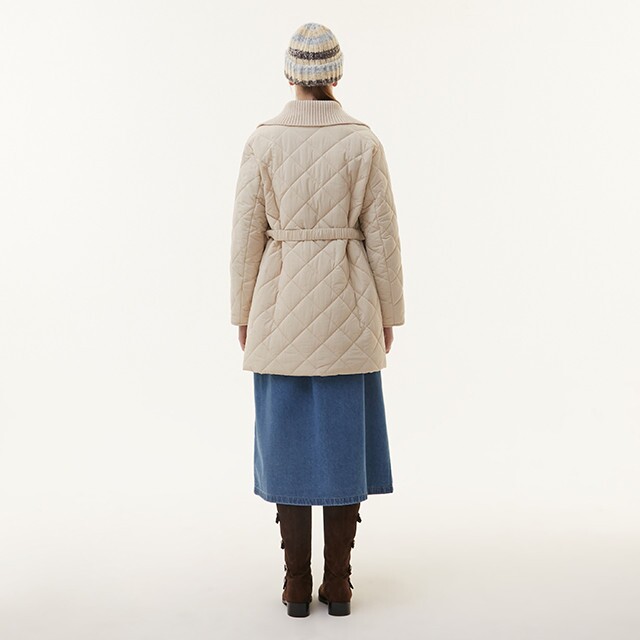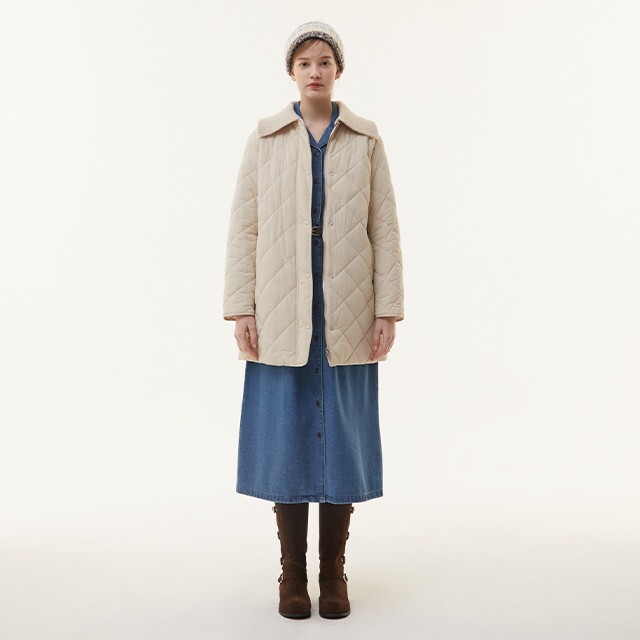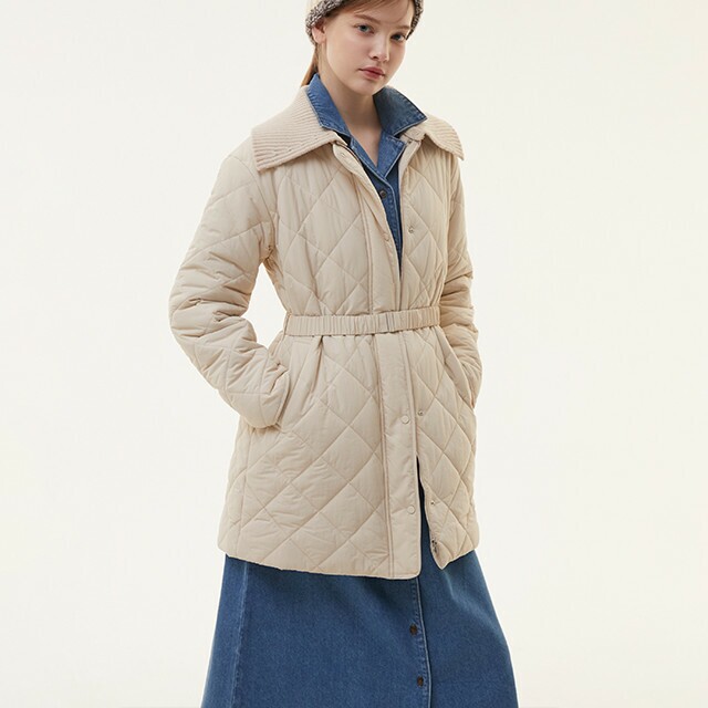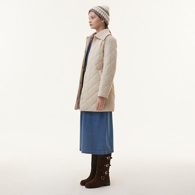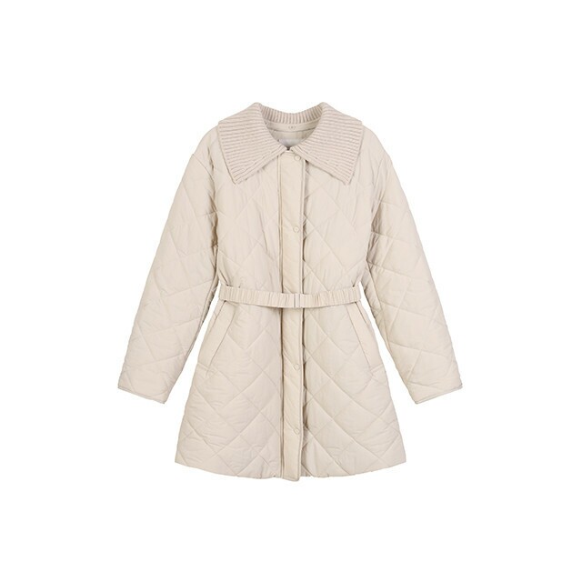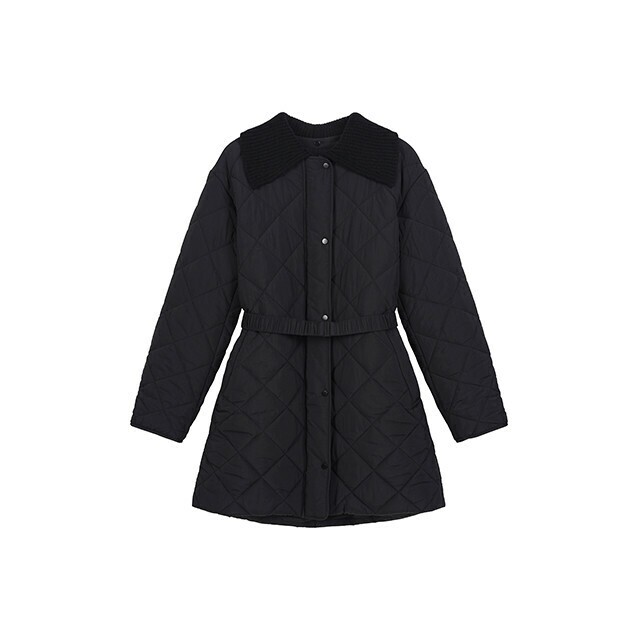 플라스틱아일랜드 니트 카라 롱 퀼팅 점퍼 PQ4PZ531