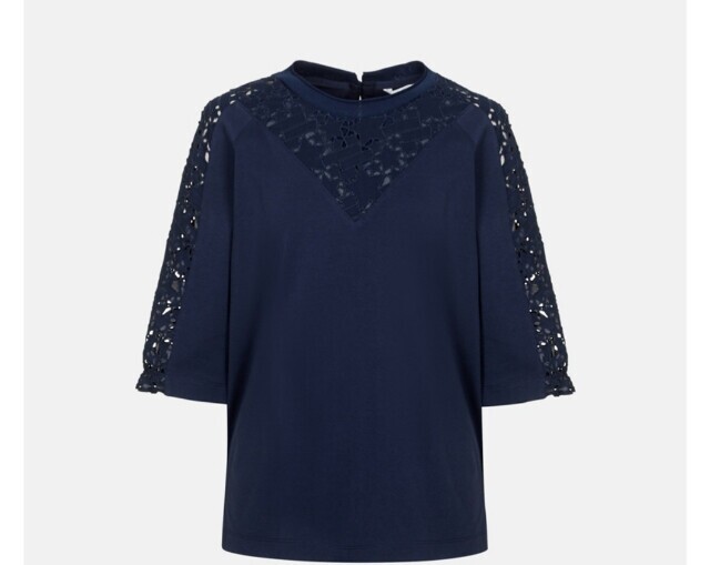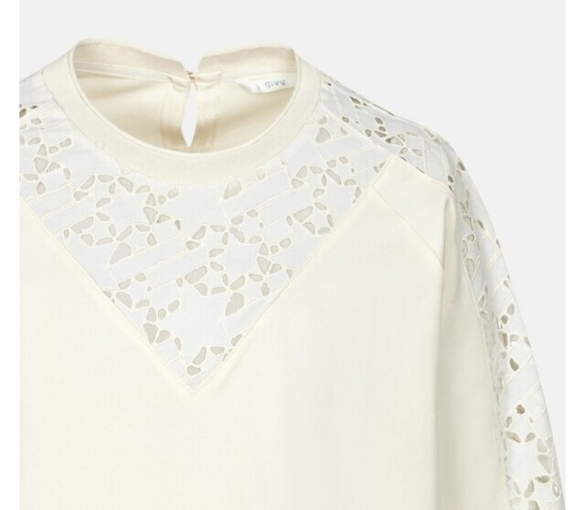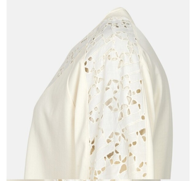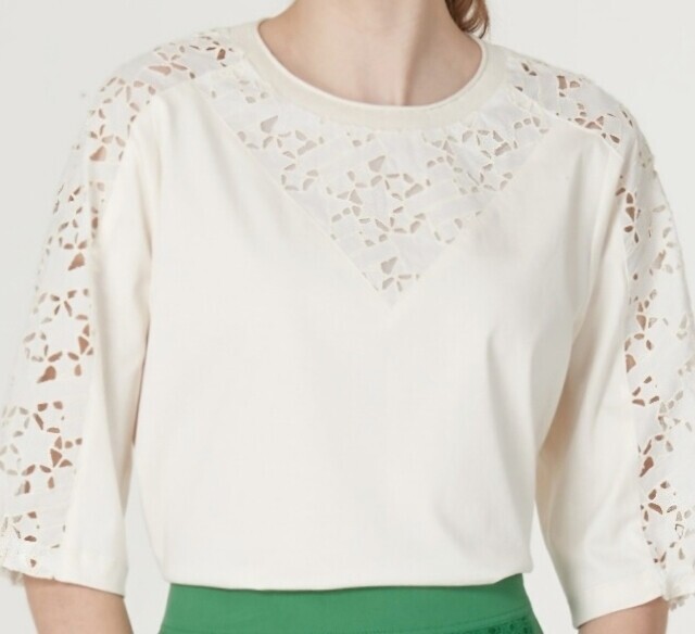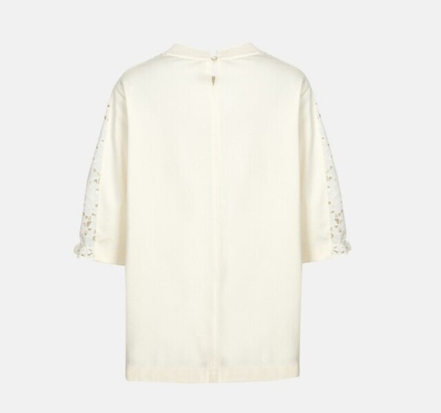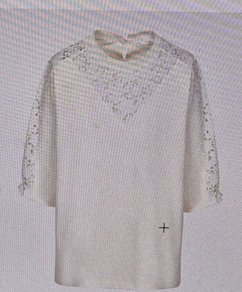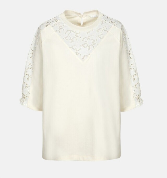 여성스러운 블라우스 느낌의 저지티셔츠입니다. 포인트로 가미된 레이스가 귀엽고 우아한 느낌이며 입었은때 가볍고 편안해요