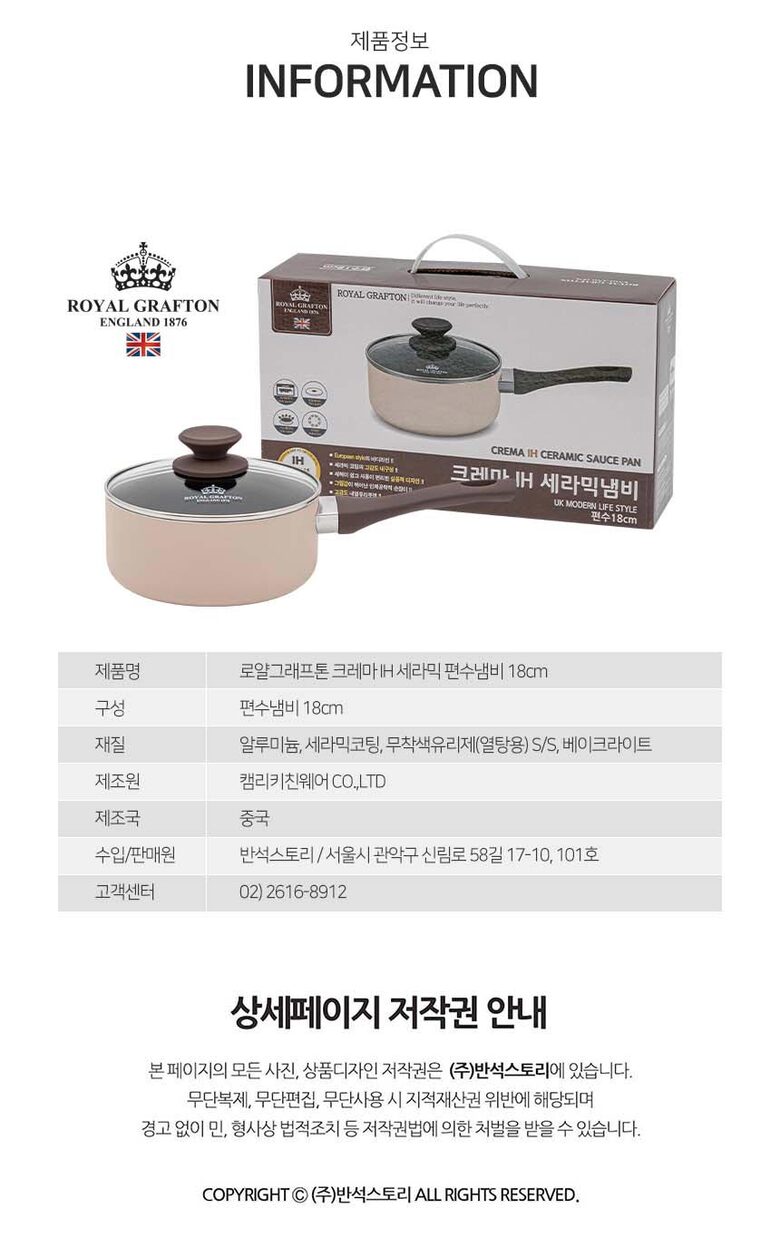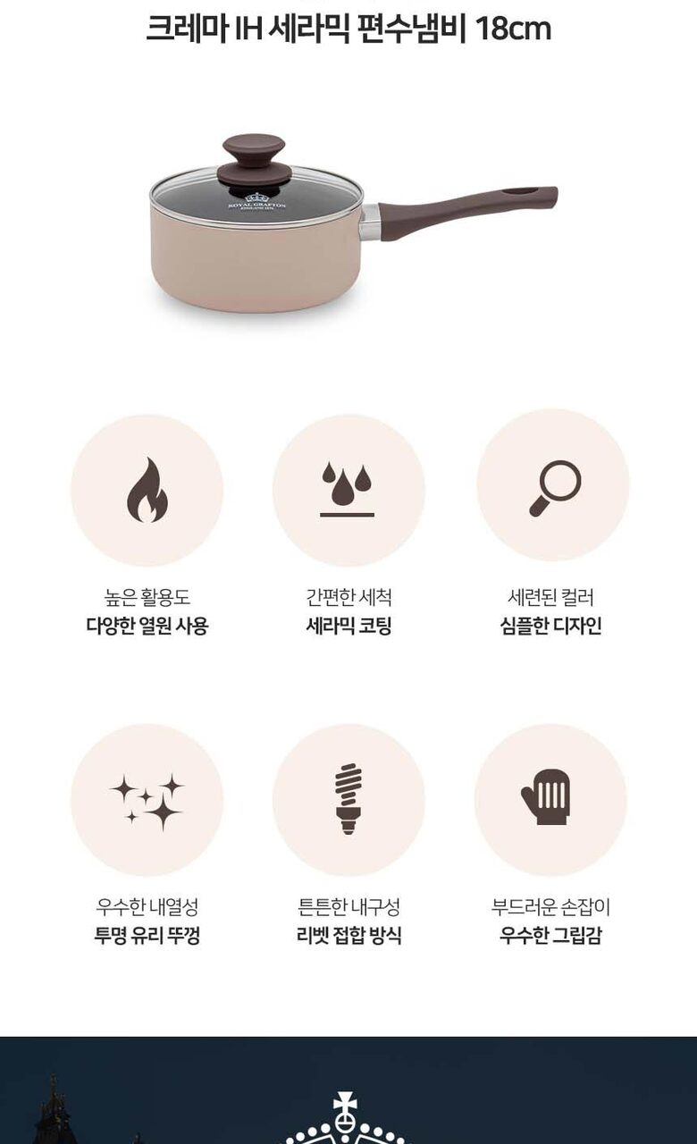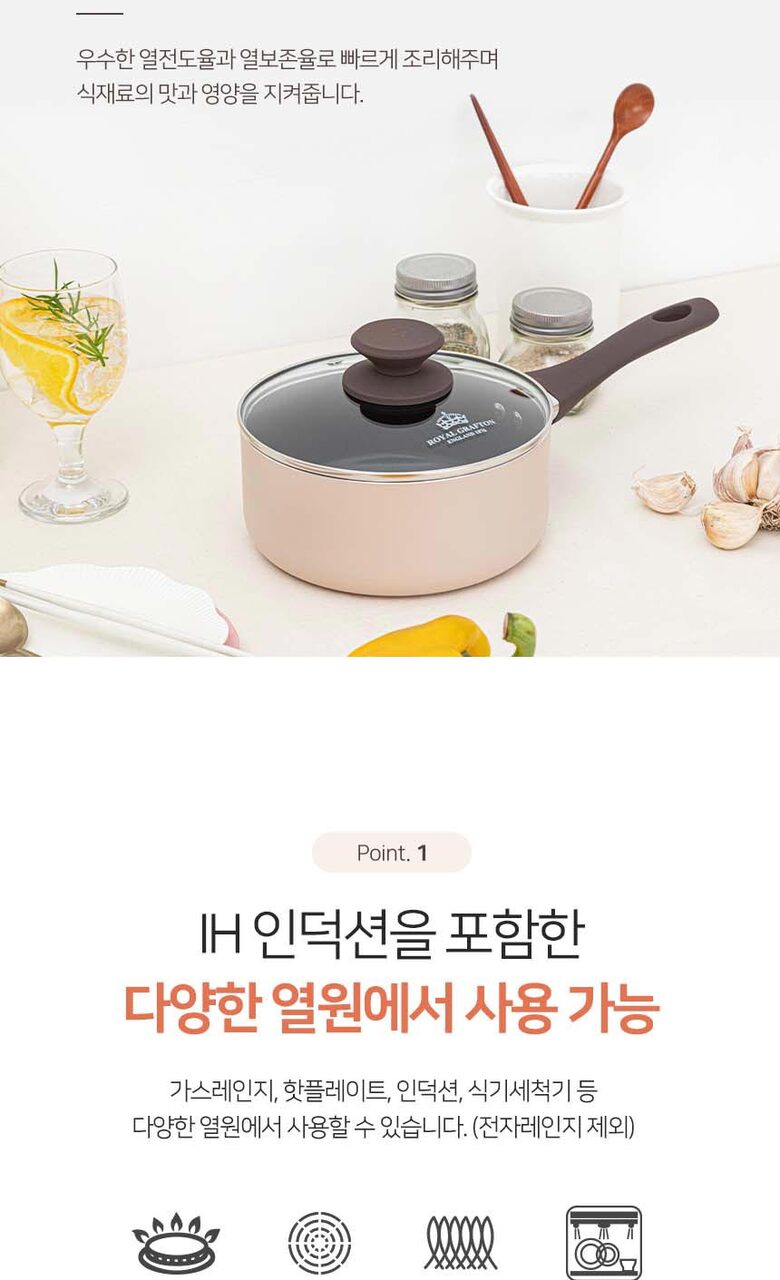 로얄그래프톤 크레마 인덕션겸용(IH) 세라믹코팅냄비 편수18