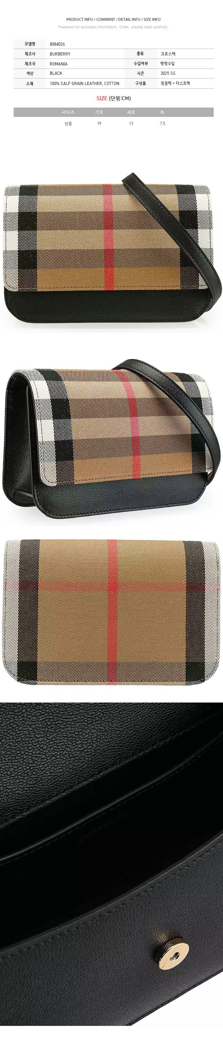#리본즈코리아 #2237246-175177001 #[명품] #버버리 #25SS #MADISON #체크 #크로스백 #블랙 #8084026 #여성 #가방/핸드백 #크로스/메신저백
