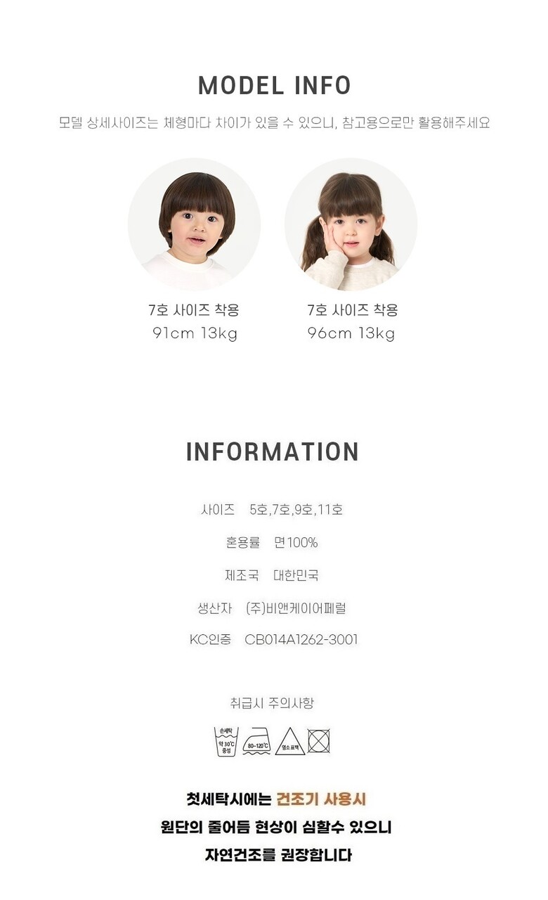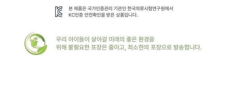 | 1. 제품 소재 (섬유의 조성 또는 혼용률을 백분율로 표시, 기능성인 경우 성적서 또는 허가서) | 상세페이지 참조 |
