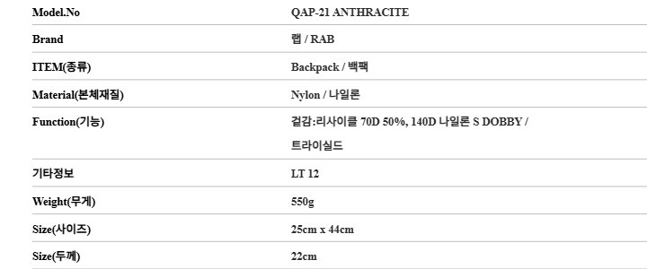 랩 QAP-21 ANTHRACITE 이온 LT 12 백팩 가방