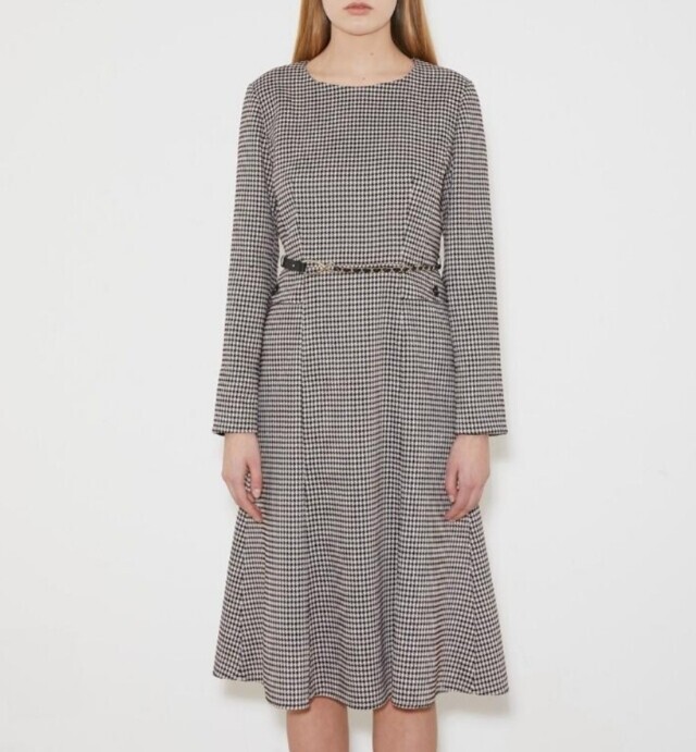 잔잔한 컬러감의 체크가 페미니한 무드를 자아내는