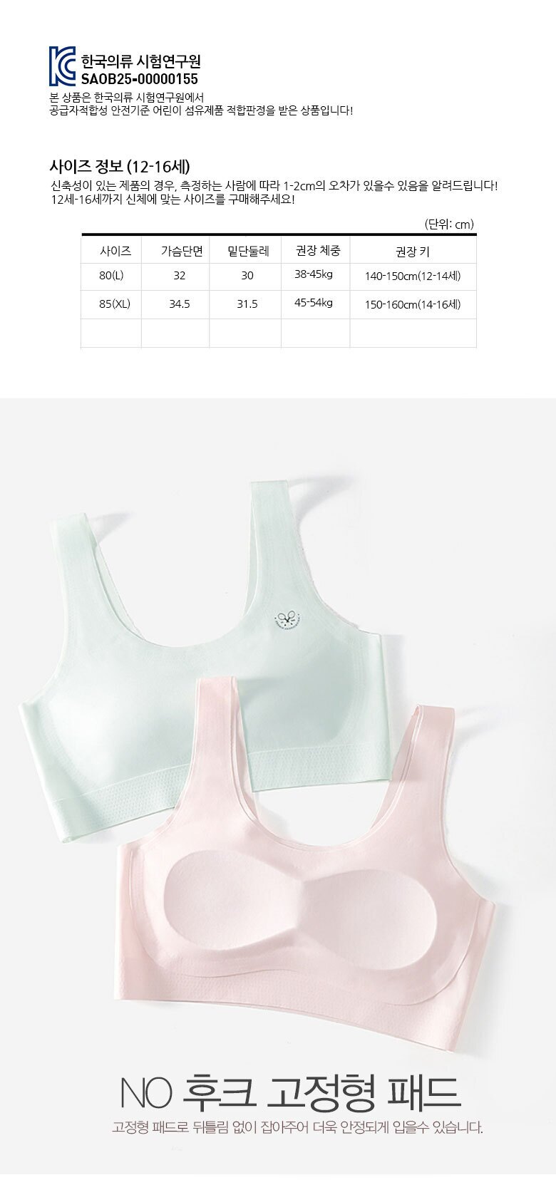 주니어 심리스 브라 2단계_5185_일체형패드(12-16세)