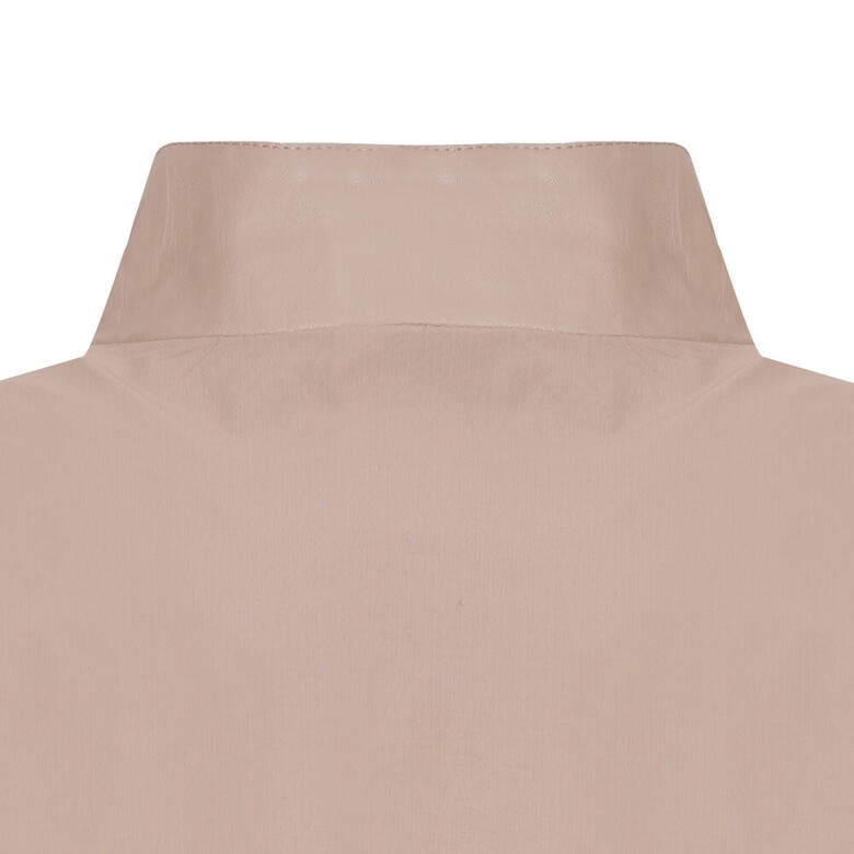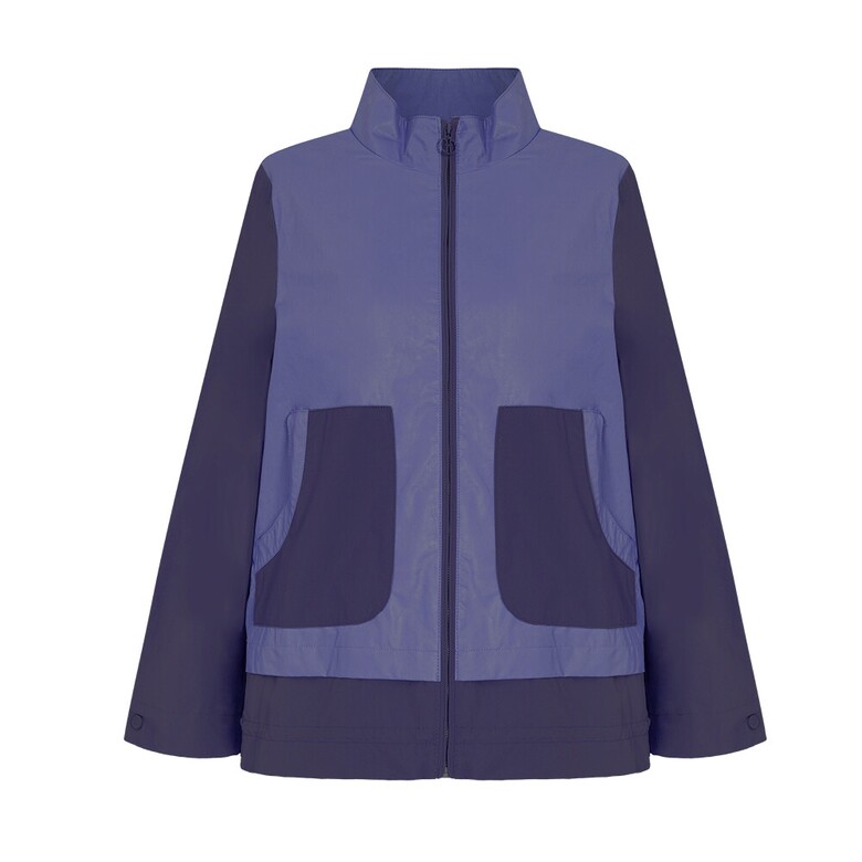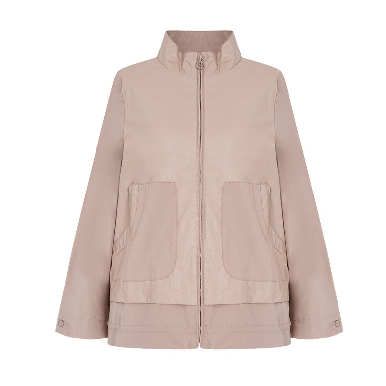 시크하면서도 케주얼한 디자인에 원단 배색이 다른 소재를 사용한 숏기장의 아우터입니다.