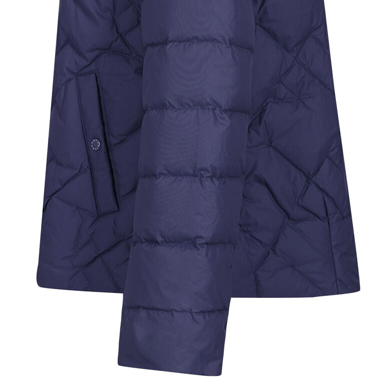 경량을 입은듯한 가벼운 착용감이 특징인 화사한 컬러의 중기장 변형 퀼팅 덕다운.