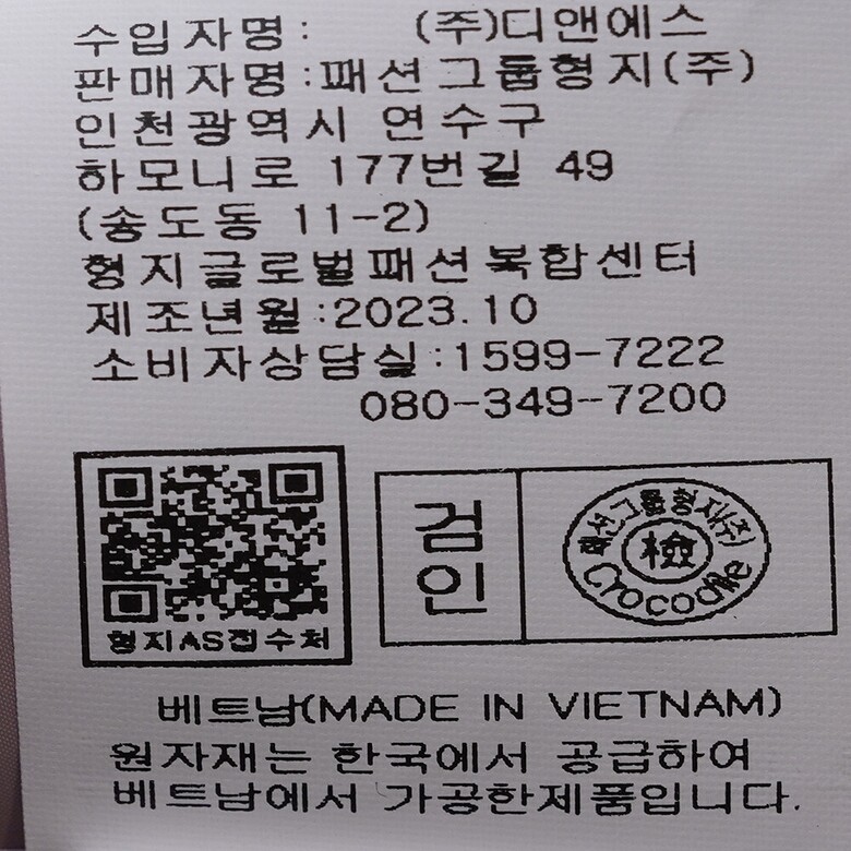 • 아울렛 상품의 특성 상 “택이 훼손”된 경우가 있으나 이는 불량이 아니며 무료 반품 대상 상품이 아닙니다.