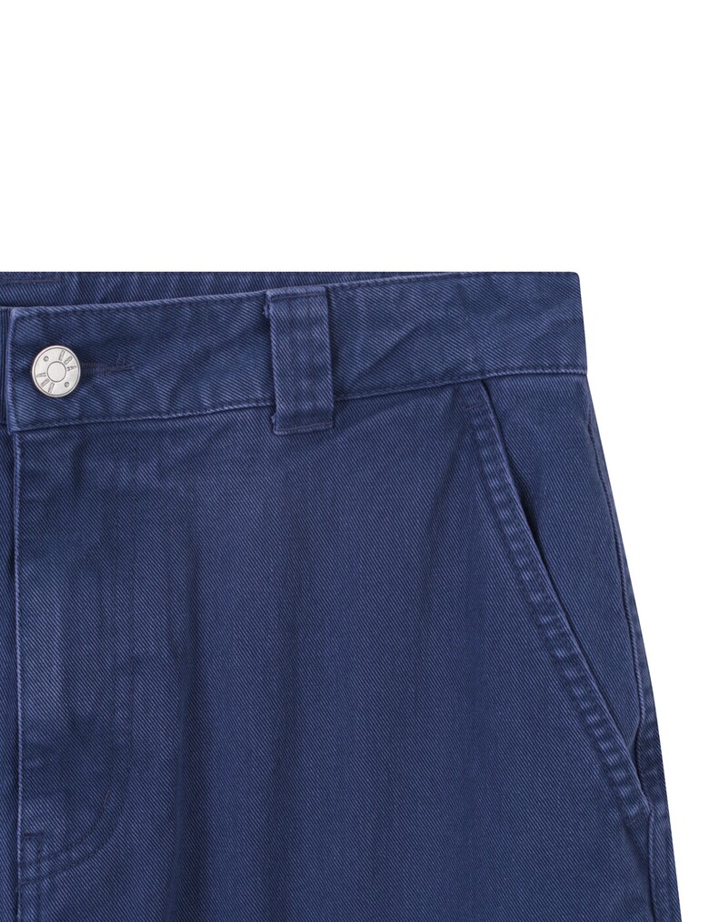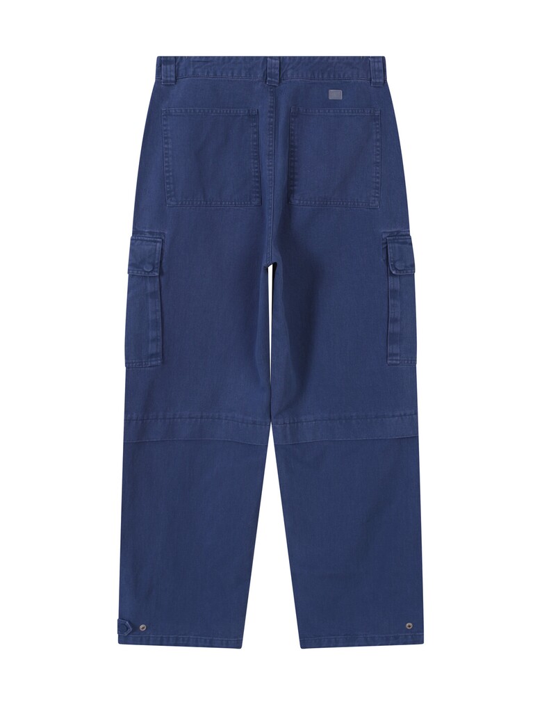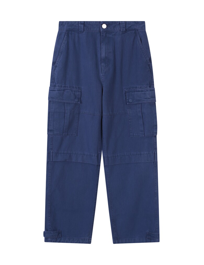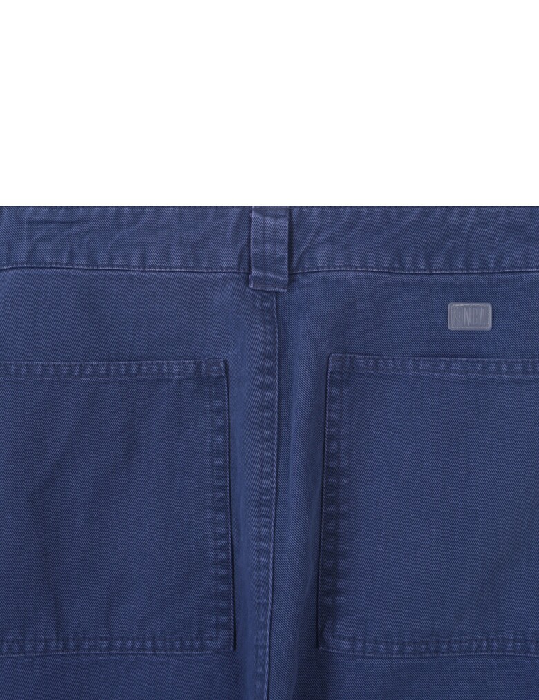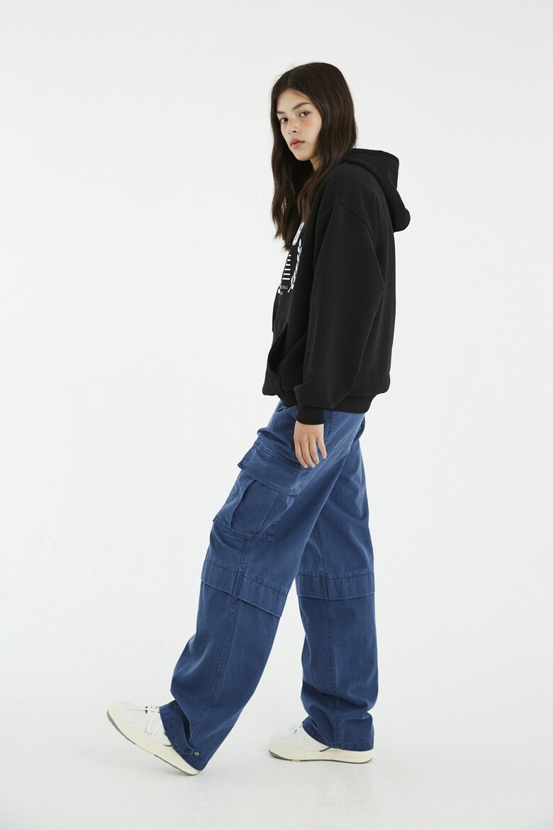 피그먼트 무드의 컬러감과 워싱으로 빈티지한 와이드 카고 데님 팬츠
