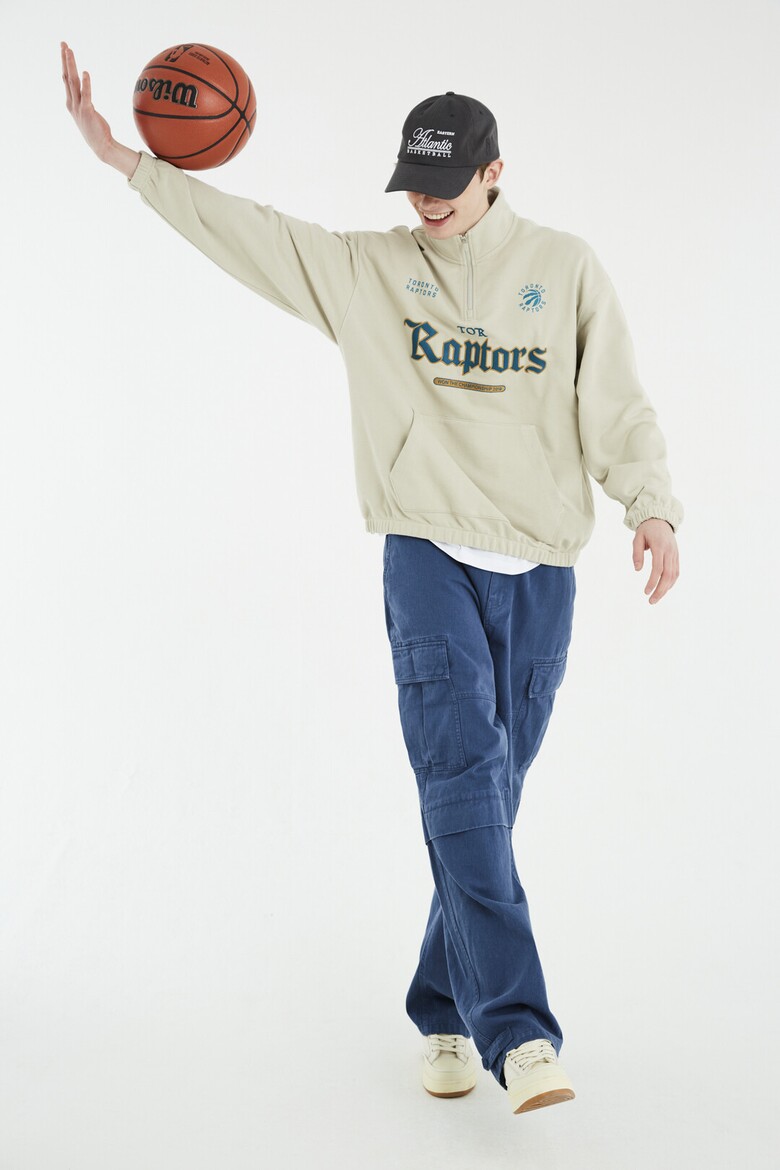 "NBA 바시티 피그먼트 와이드 카고 데님 팬츠"